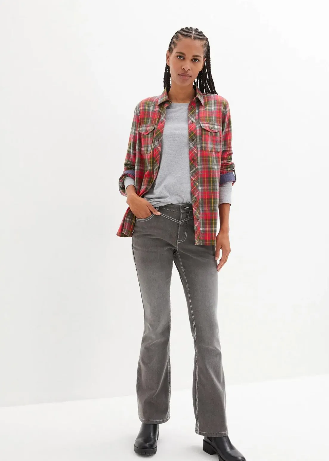 Mit zwei aufgesetzten Brusttaschen, mit Knöpfen zu schließen, Ärmel zum krempeln und mit einem Riegel fixierbar. Länge in Gr. 42 ca.: 68cm, maschinenwaschbar.
