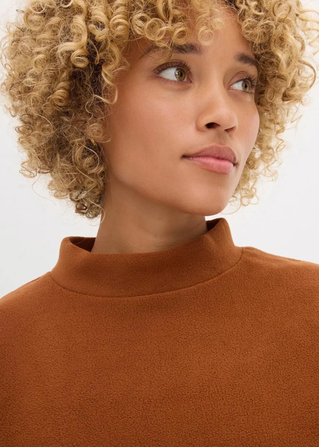 Fleecepullover in weiter Passform. Mit Stehkragen und überschnittener Schulter.
