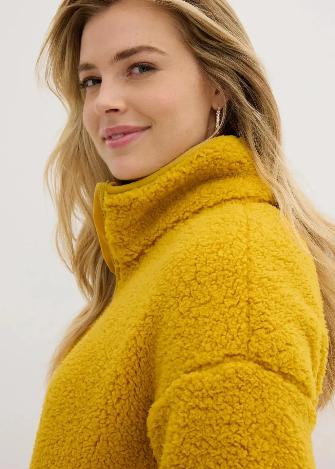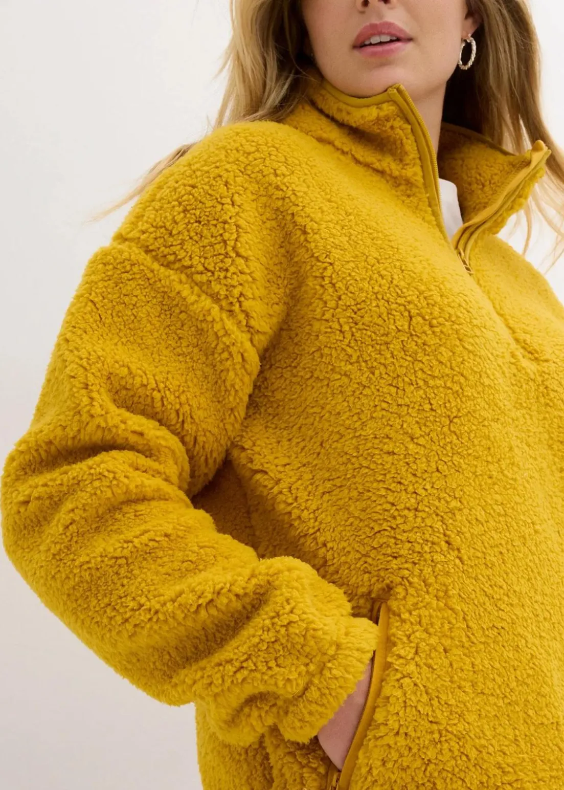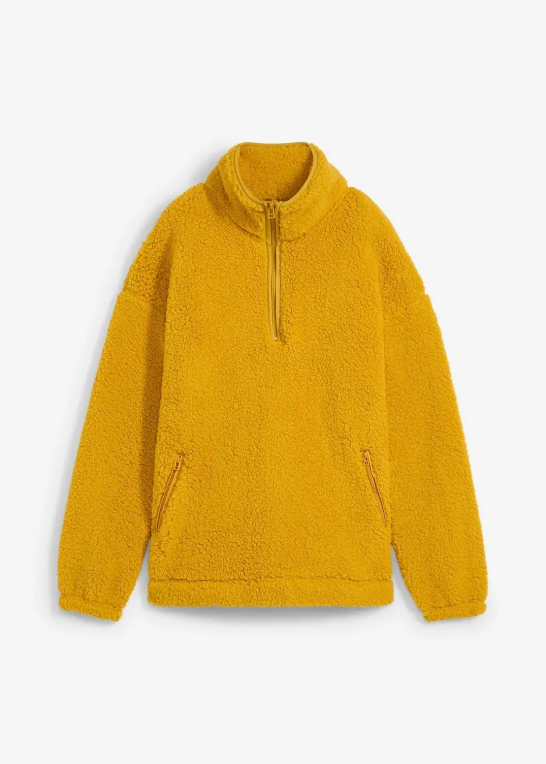 Oversize- Fleeceshirt mit Stehkragen und Reißverschluss