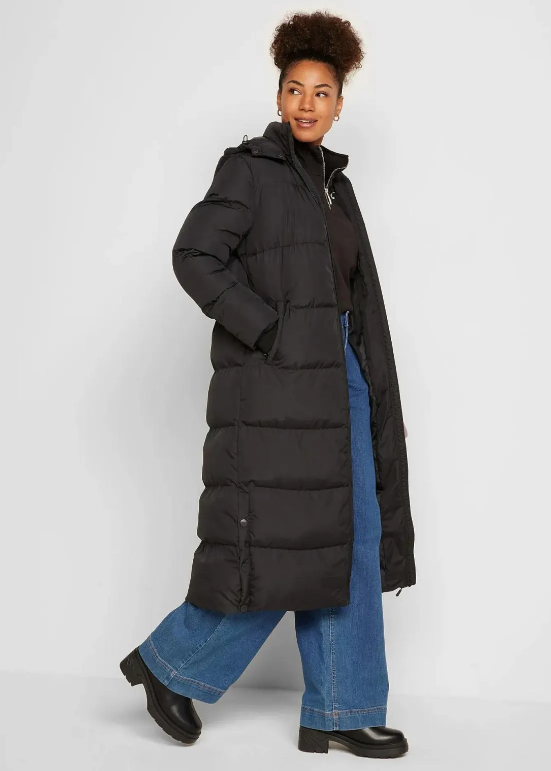 Wärmender Steppmantel mit seitlichen Knöpfen, extralang