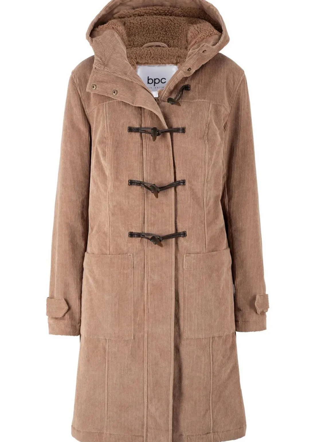 Gefütterter Cord-Dufflecoat mit Kapuze und Knebelknöpfen