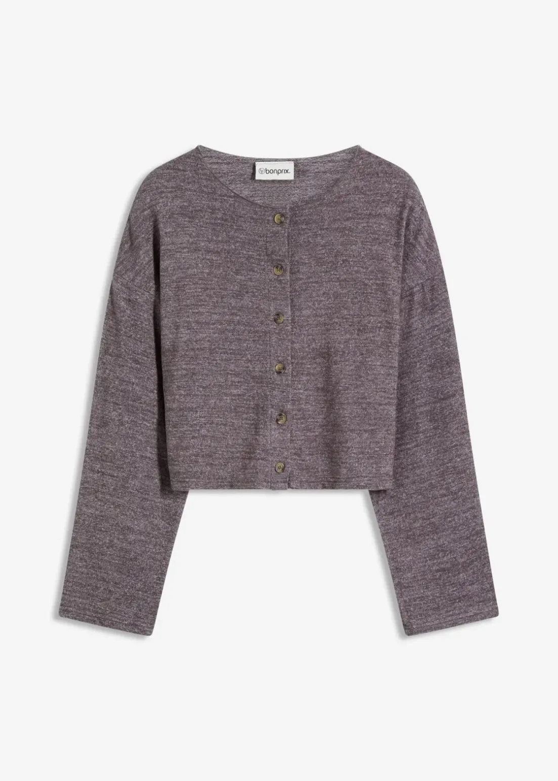 Gerippter Cardigan mit Knopfleiste und weiten Ärmeln