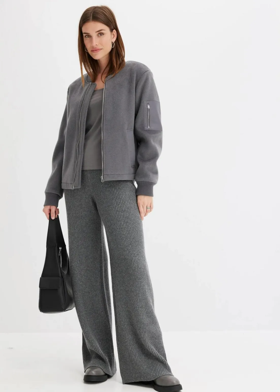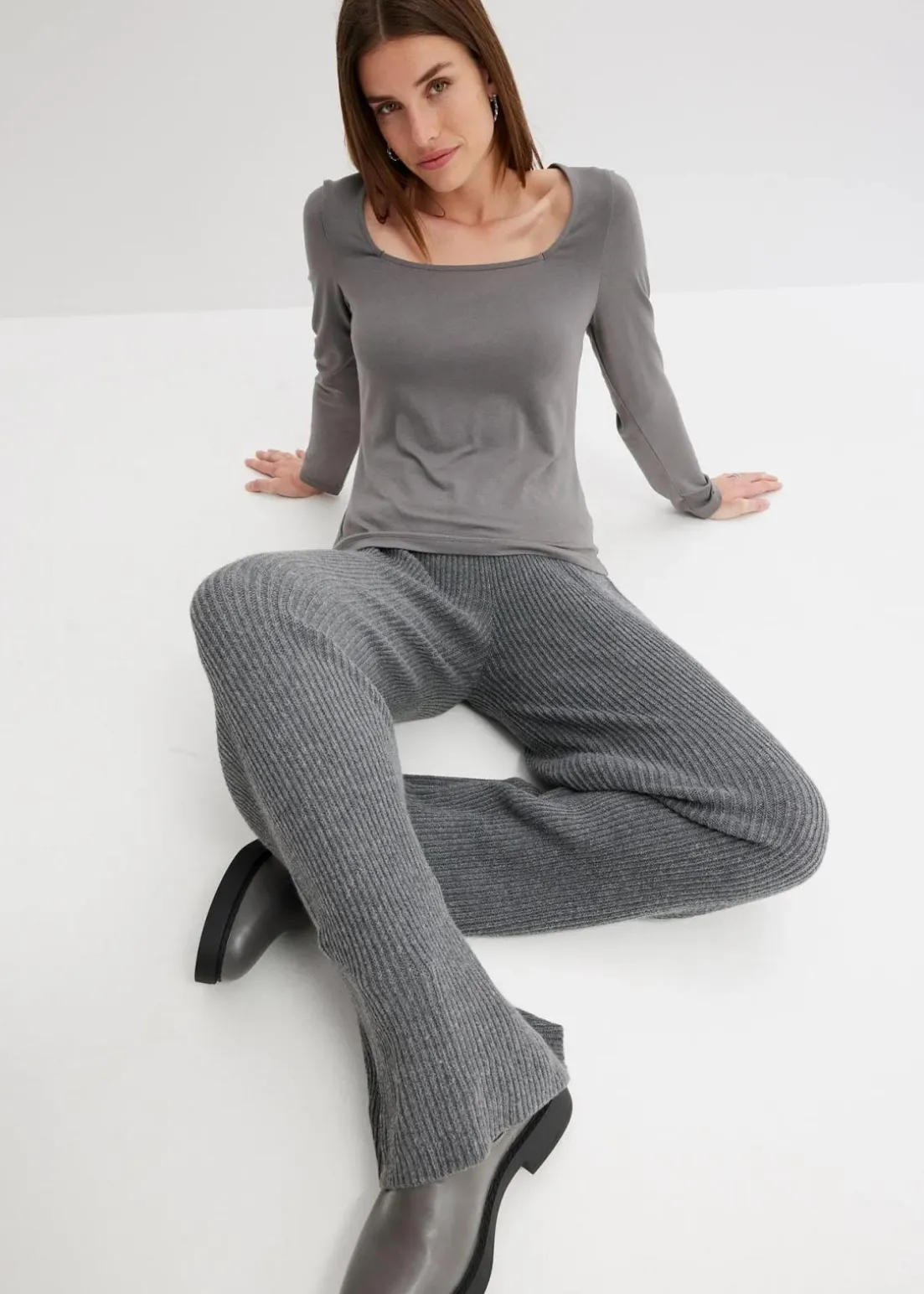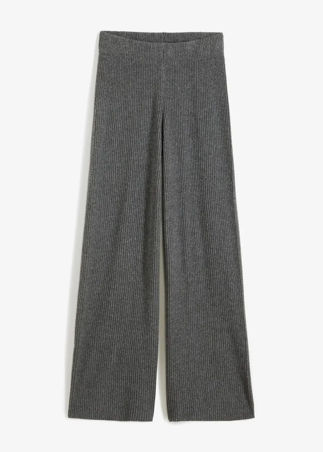Schöne Hose aus Rippstrick wirkt durch den breiten Bund formgebend