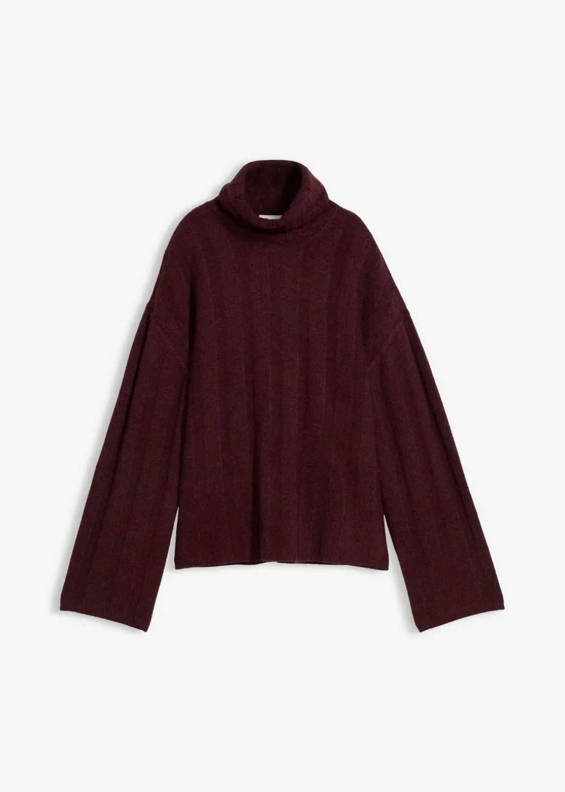 Ripp-Pullover mit Rollkragen und Seitenschlitzen