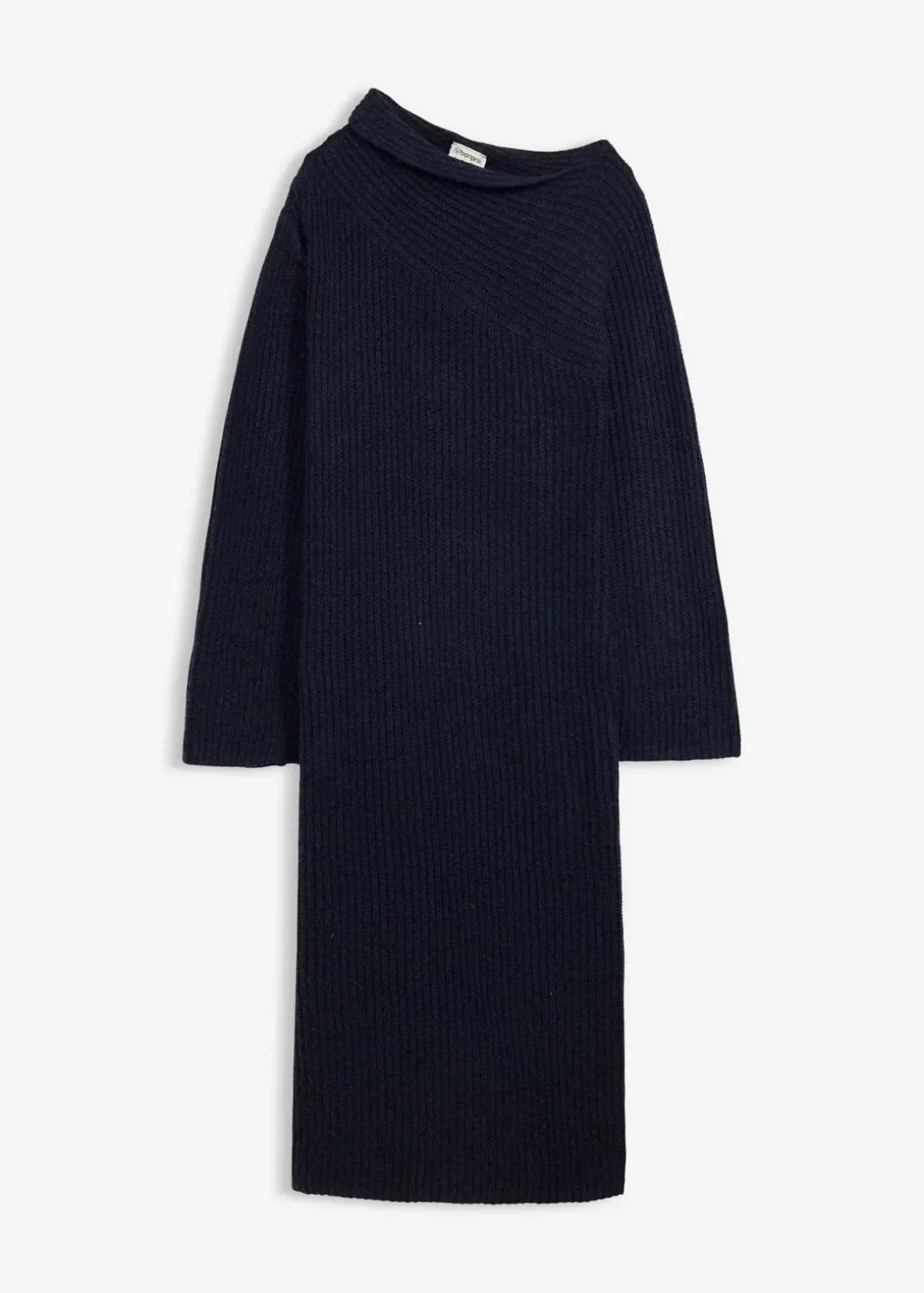 Mit asymmetrischem Ausschnitt und Schlitz am Saum