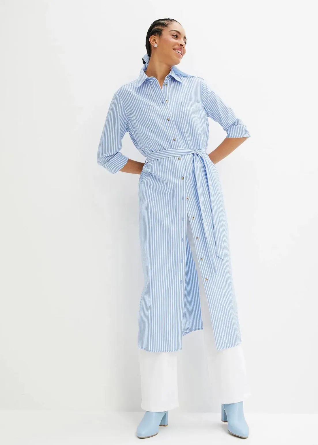 Wadenlanges Hemdblusenkleid aus einem luftigen Baumwollstoff