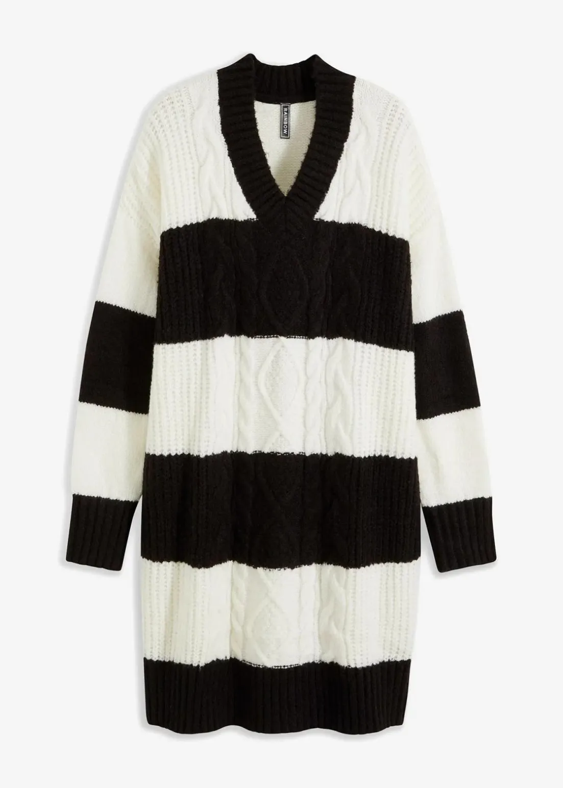Gestreiftes Oversized-Strickkleid mit Zopfmuster
