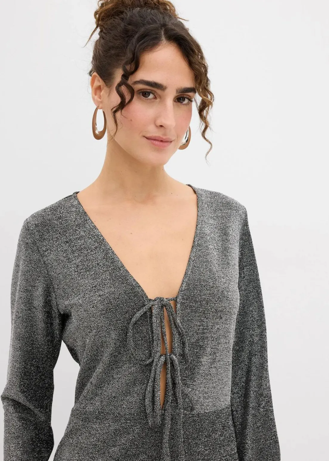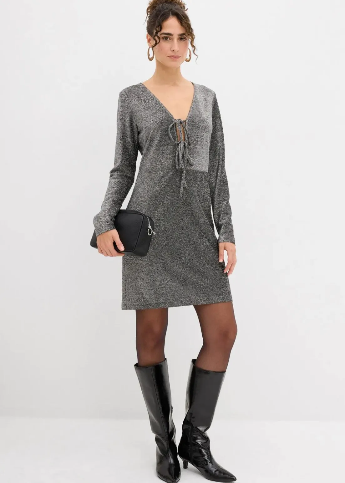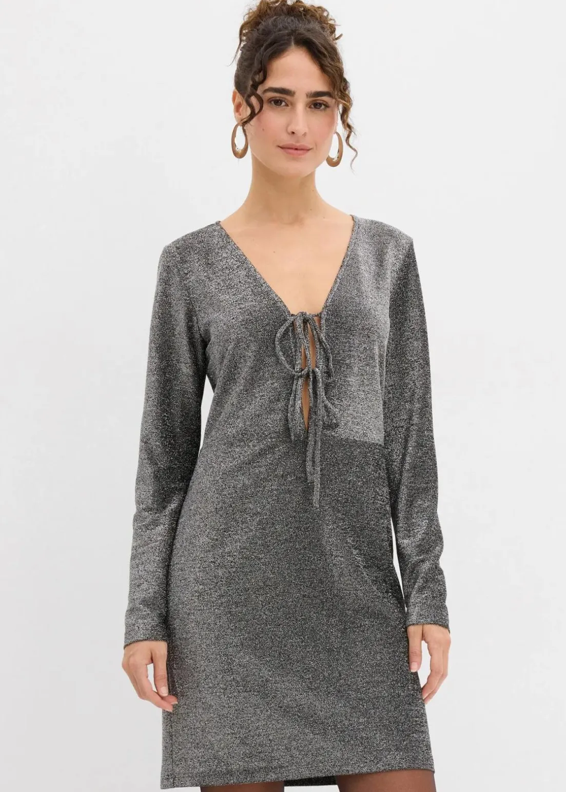 Modisches Minikleid mit Schleifendetail in Glitzeroptik und langen Ärmeln