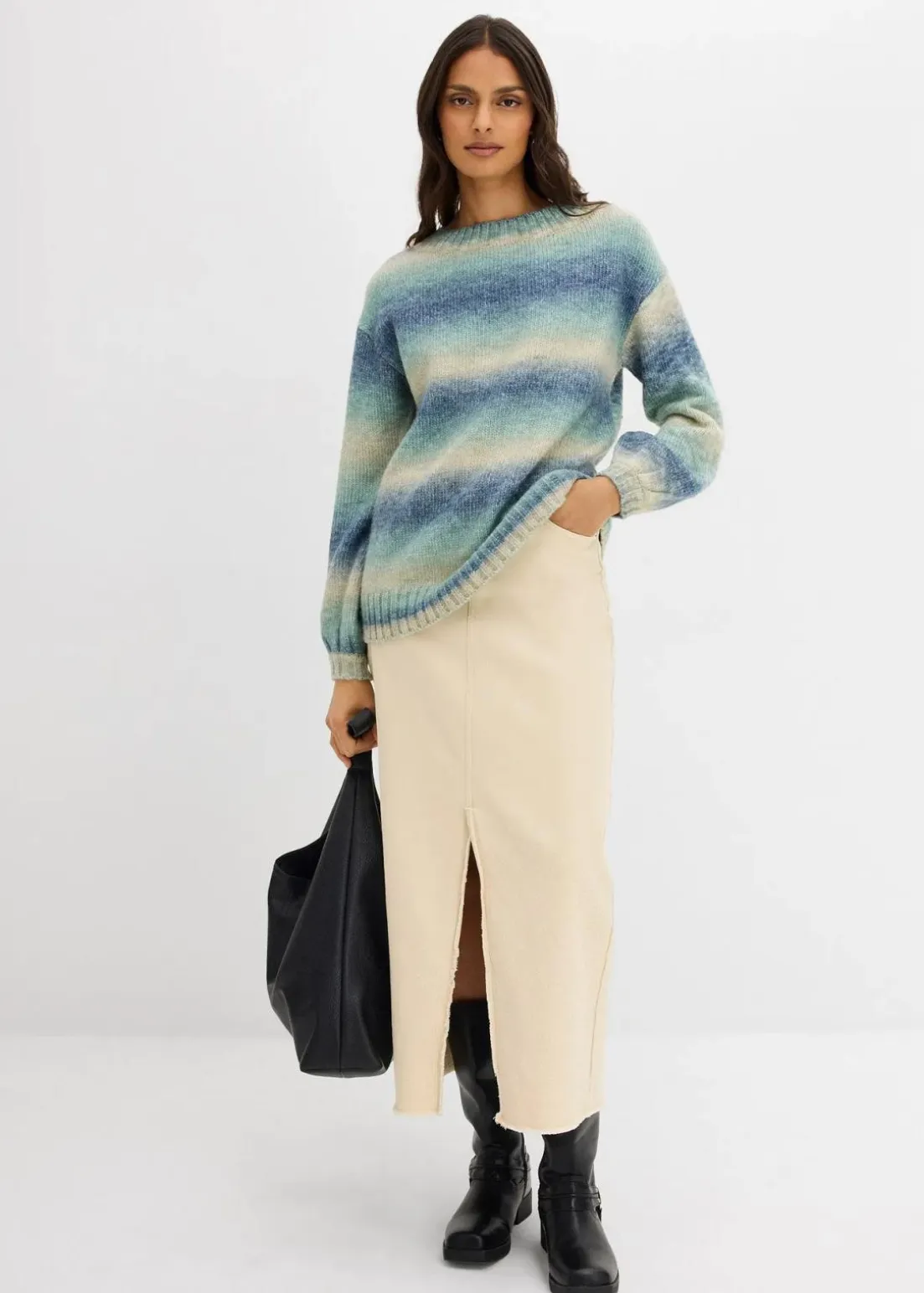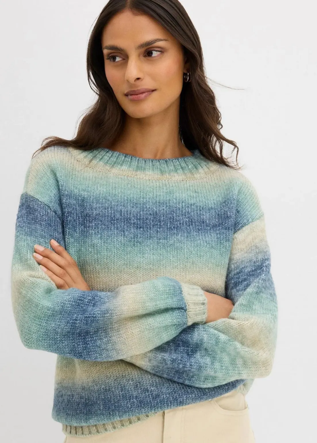 Lässiger Grobstrick-Pullover mit Farbverlauf aus weichem Woll-Mix