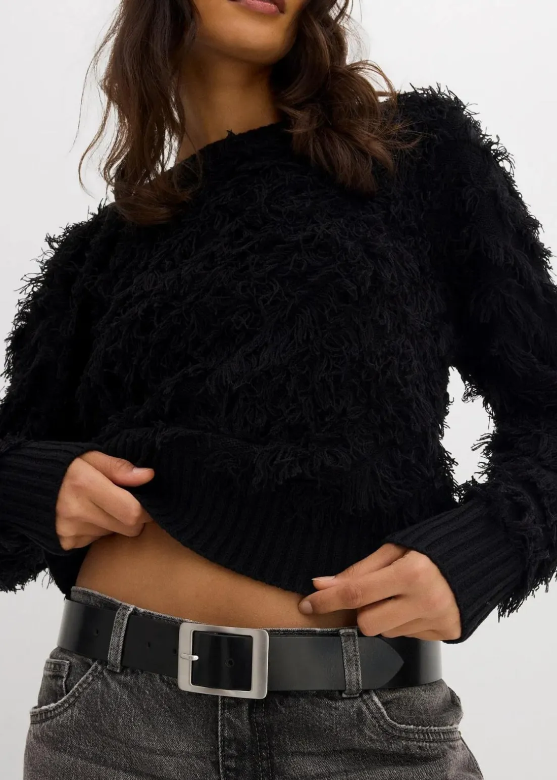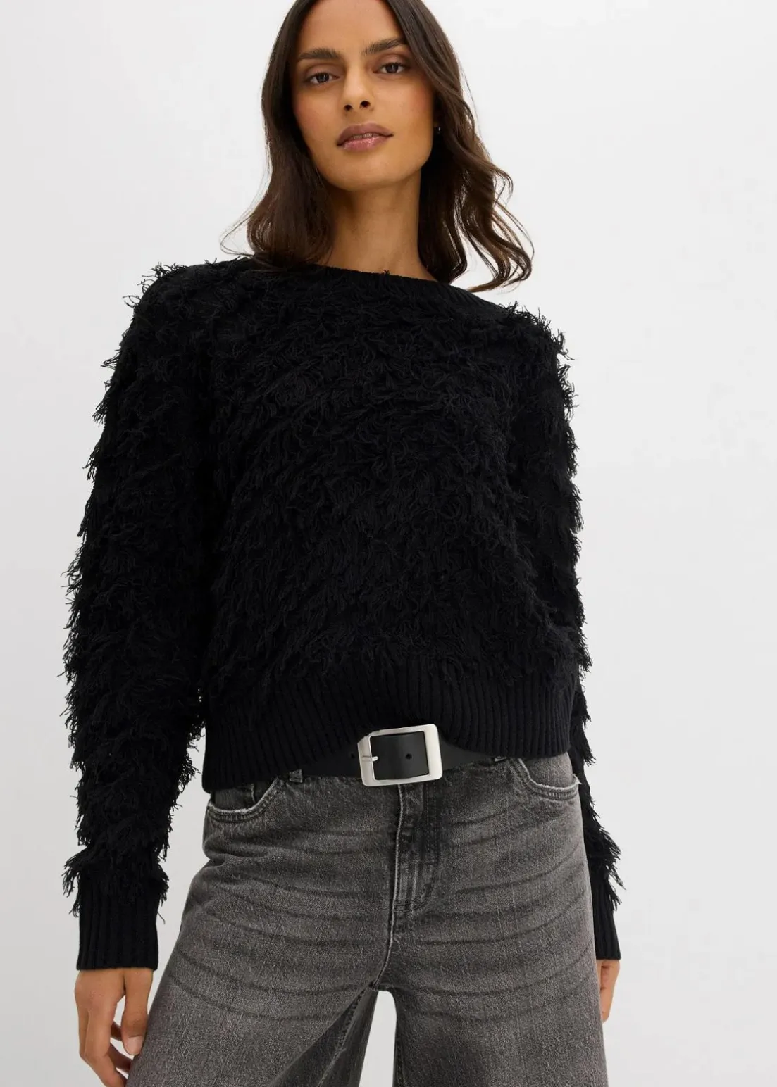 Lässiger Grobstrick-Pullover mit Fransen