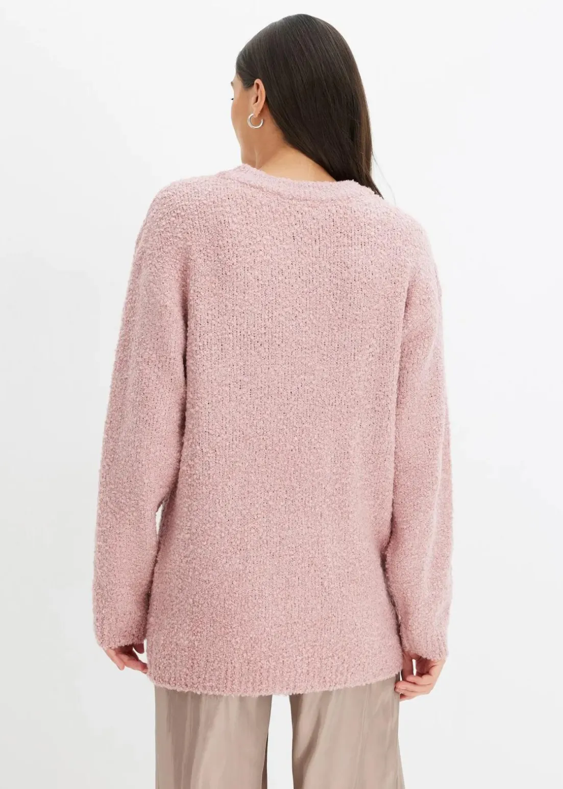 Oversize Bouclé-Pullover mit V-Ausschnitt