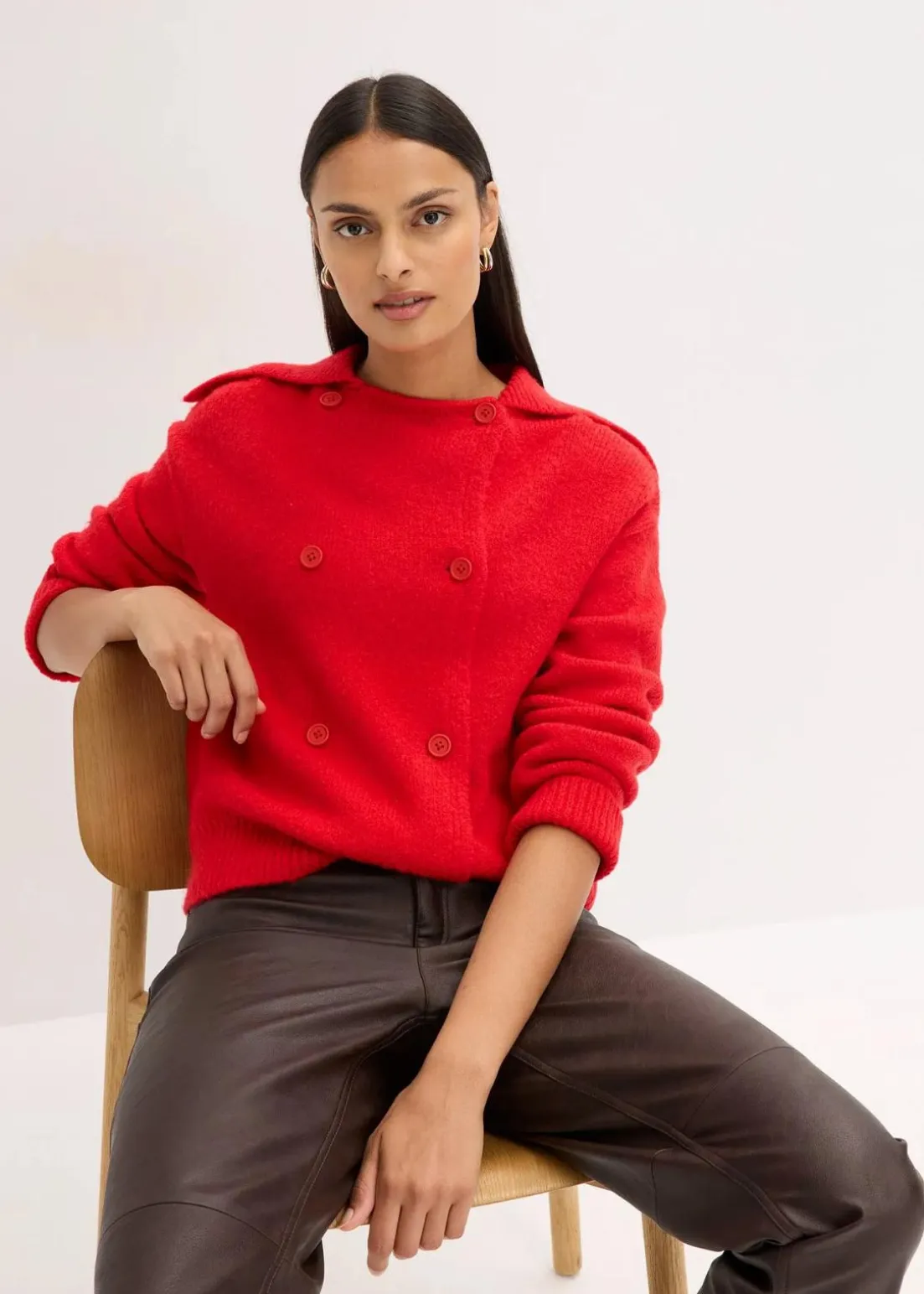 Moderne Strickjacke mit doppelreihiger Knopfleiste und Kragen