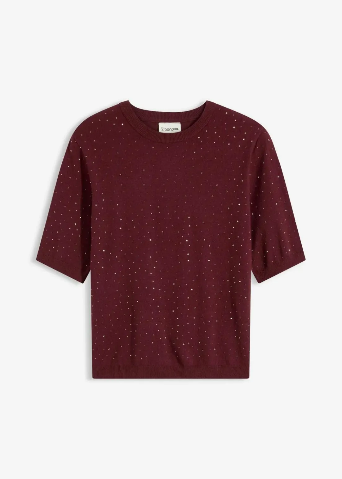 eleganter Halbarm-Pullover aus weichem Viskose-Mix mit Glitzersteinchen