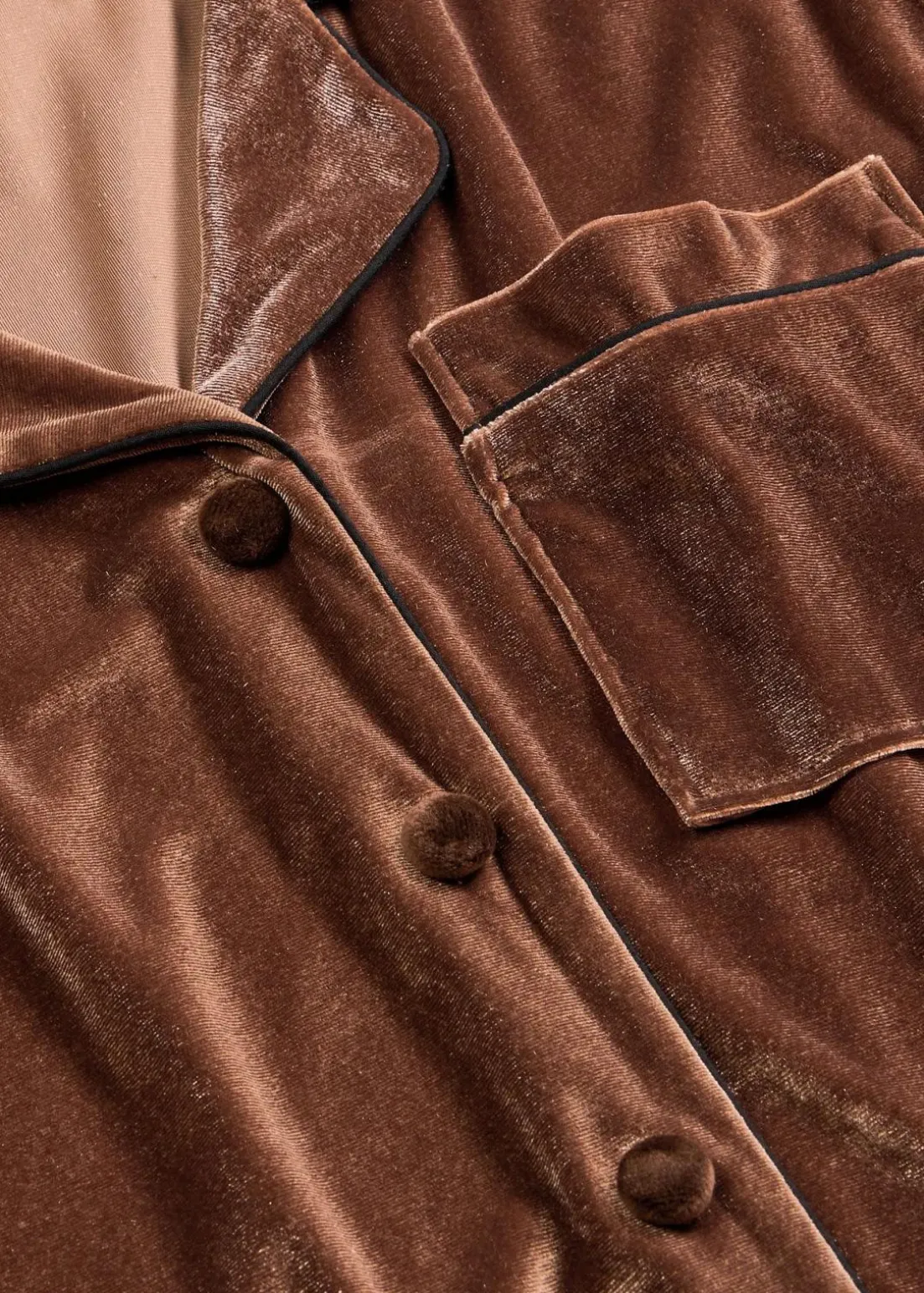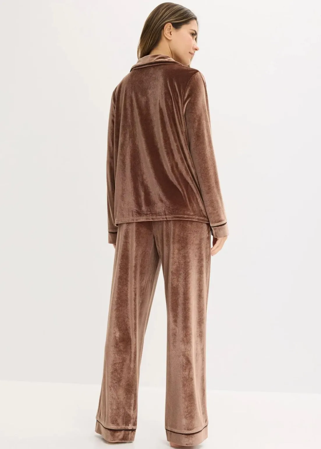 Hausanzug aus Samt mit Reverskragen und seitlichen Eingriffstaschen an der Hose