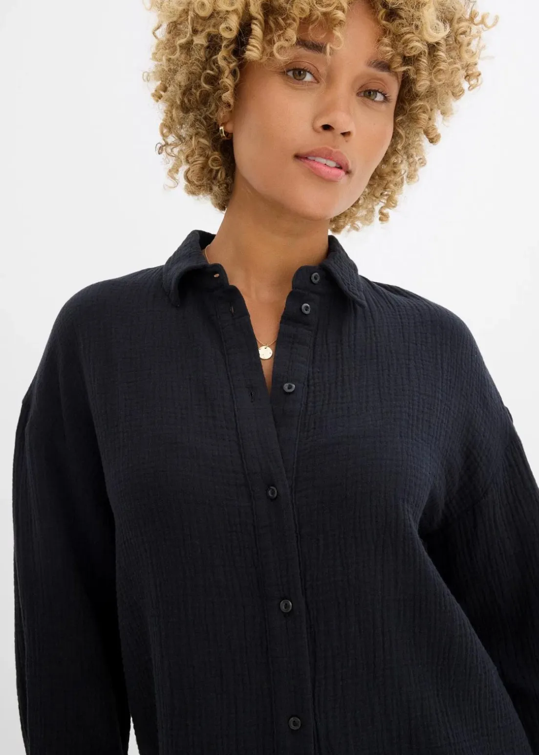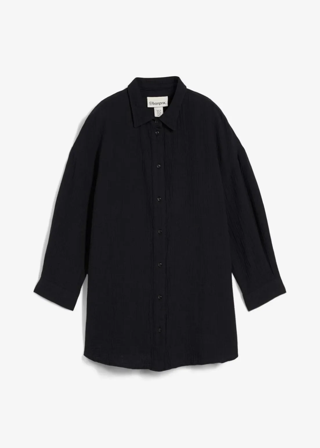 Lange Oversized-Bluse aus Musselin mit Knopfleiste