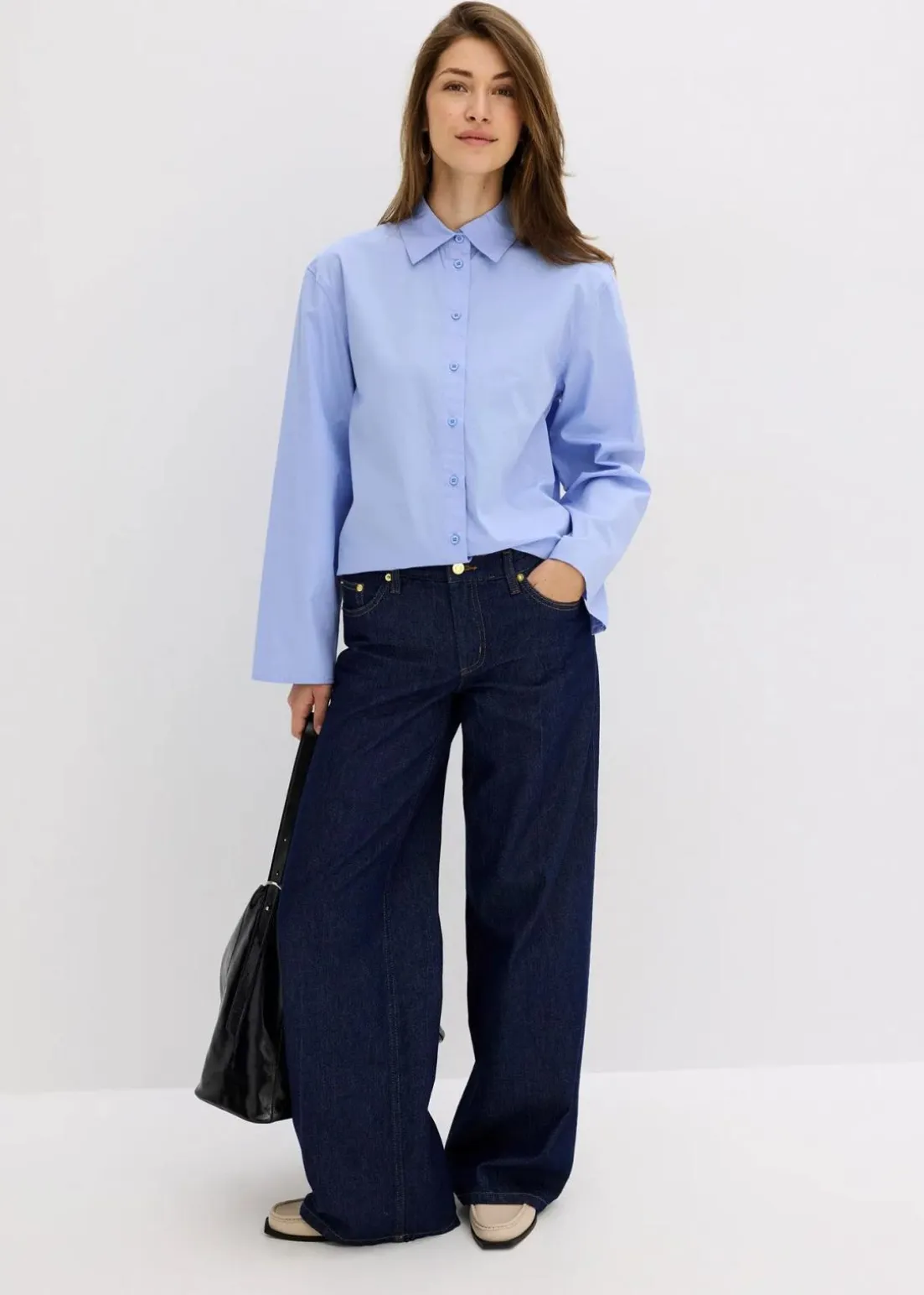 Hemd mit Umlegekragen, langen Ärmel und Knopfleiste vorne