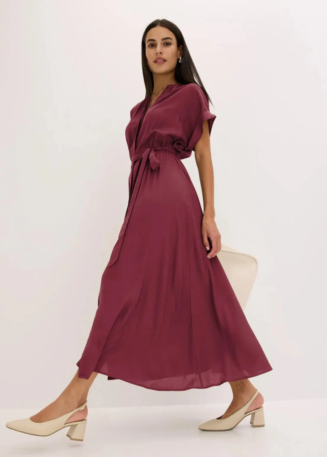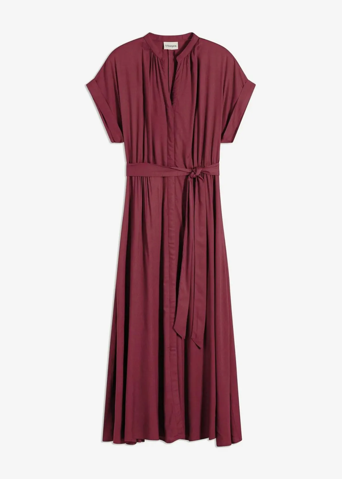 Modisches Hemdblusenkleid mit Bindeband um die Taille.