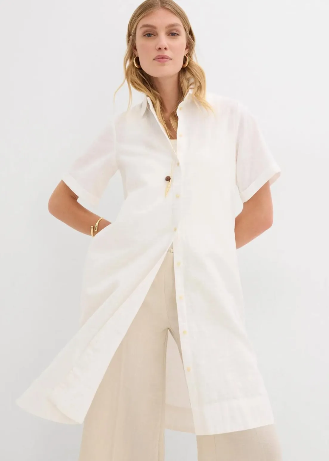 Hemdblusenkleid, gerade und lässig geschnitten. Leicht ausgestellt zum Saum, seitliche Schlitze, weit geschnittener Ärmel