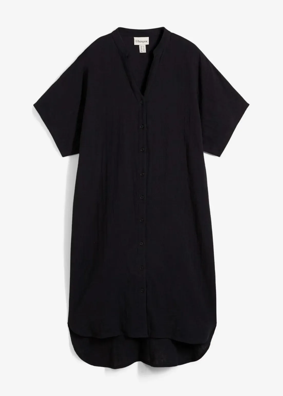 Musselin-Kleid mit Henley-Kragen, knieumspielend