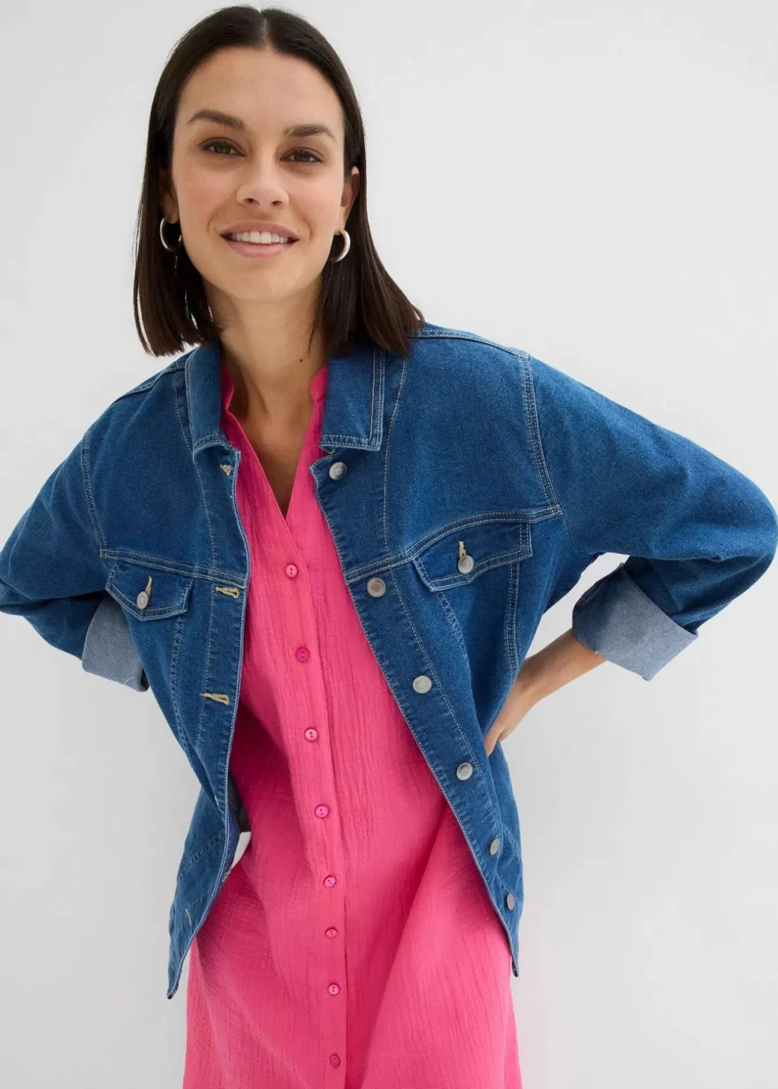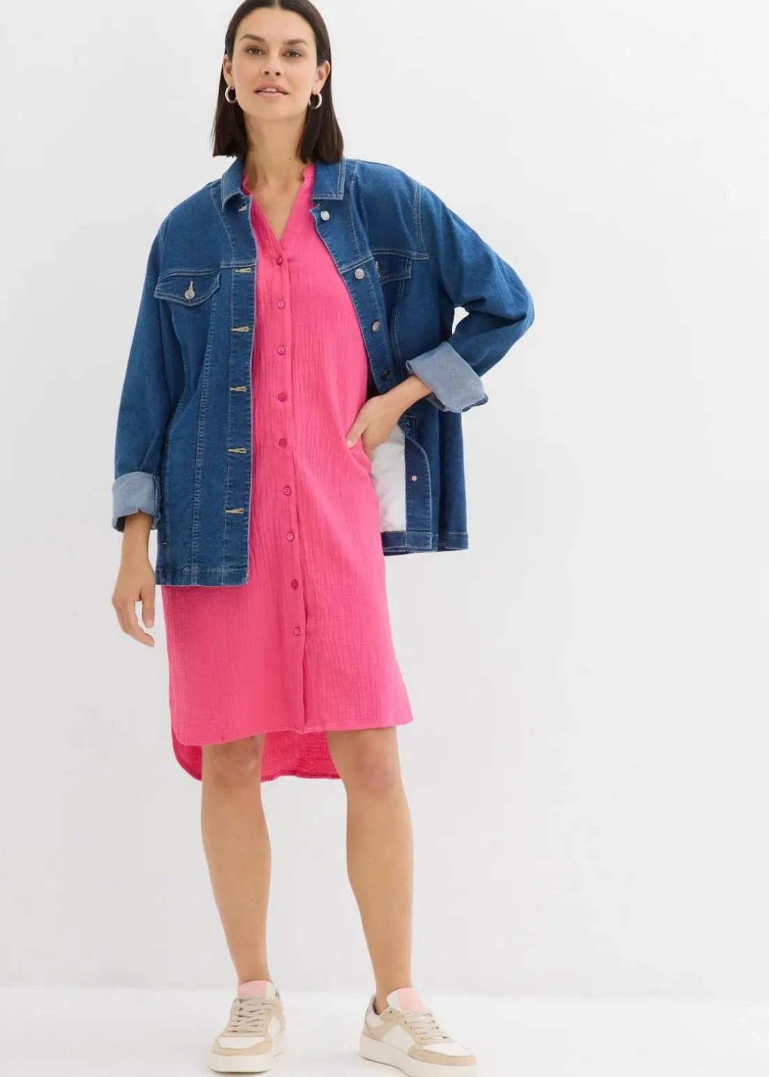 Musselin-Kleid mit Henley-Kragen, knieumspielend
