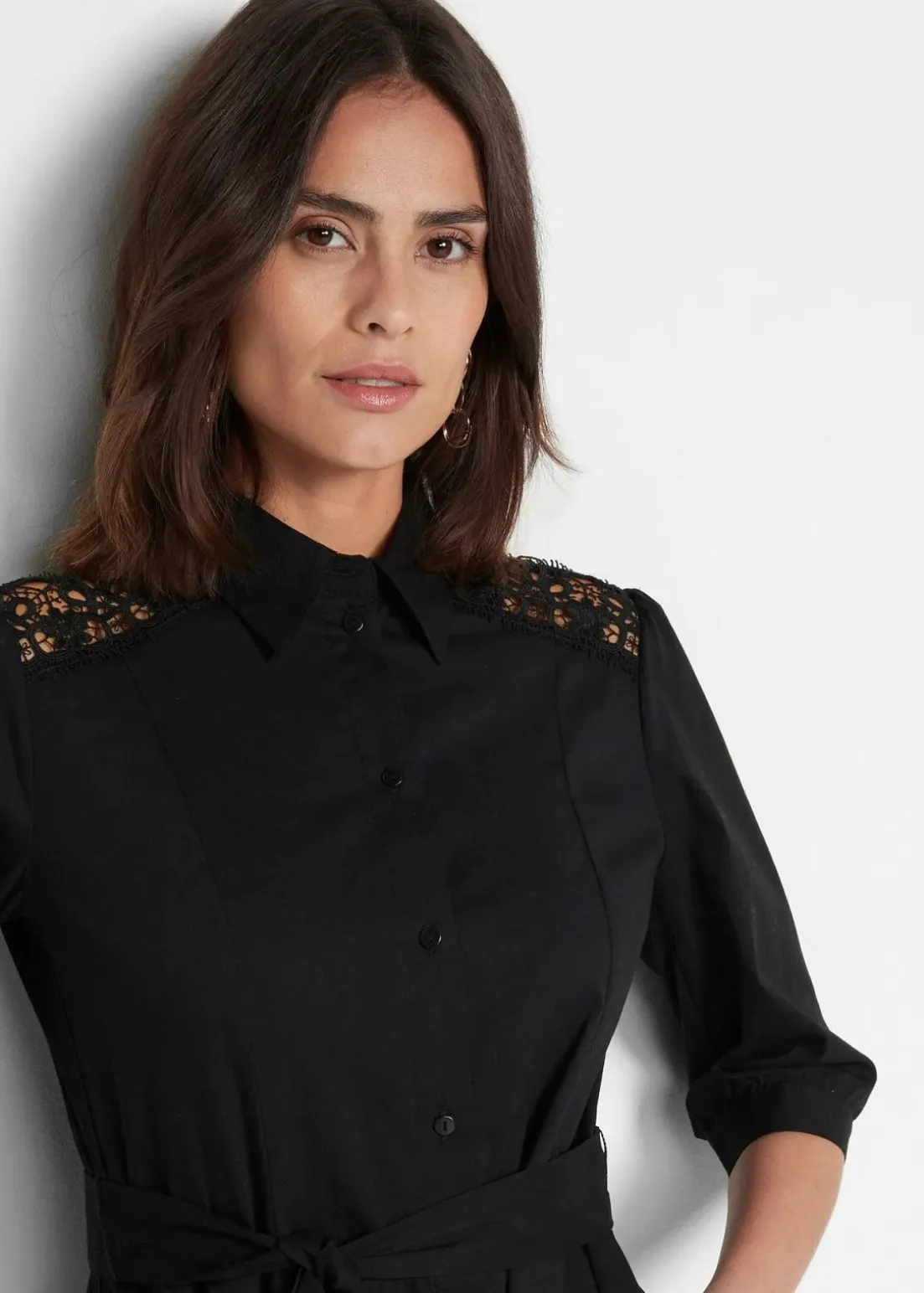 Charismatisches Hemdblusenkleid mit Eingriffstaschen und Taillenband zum Binden