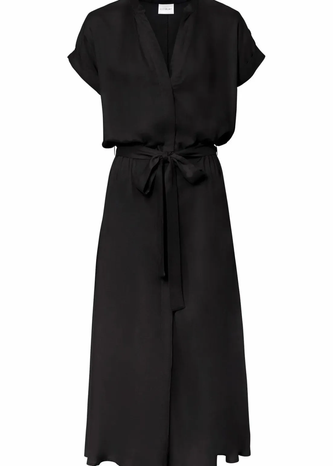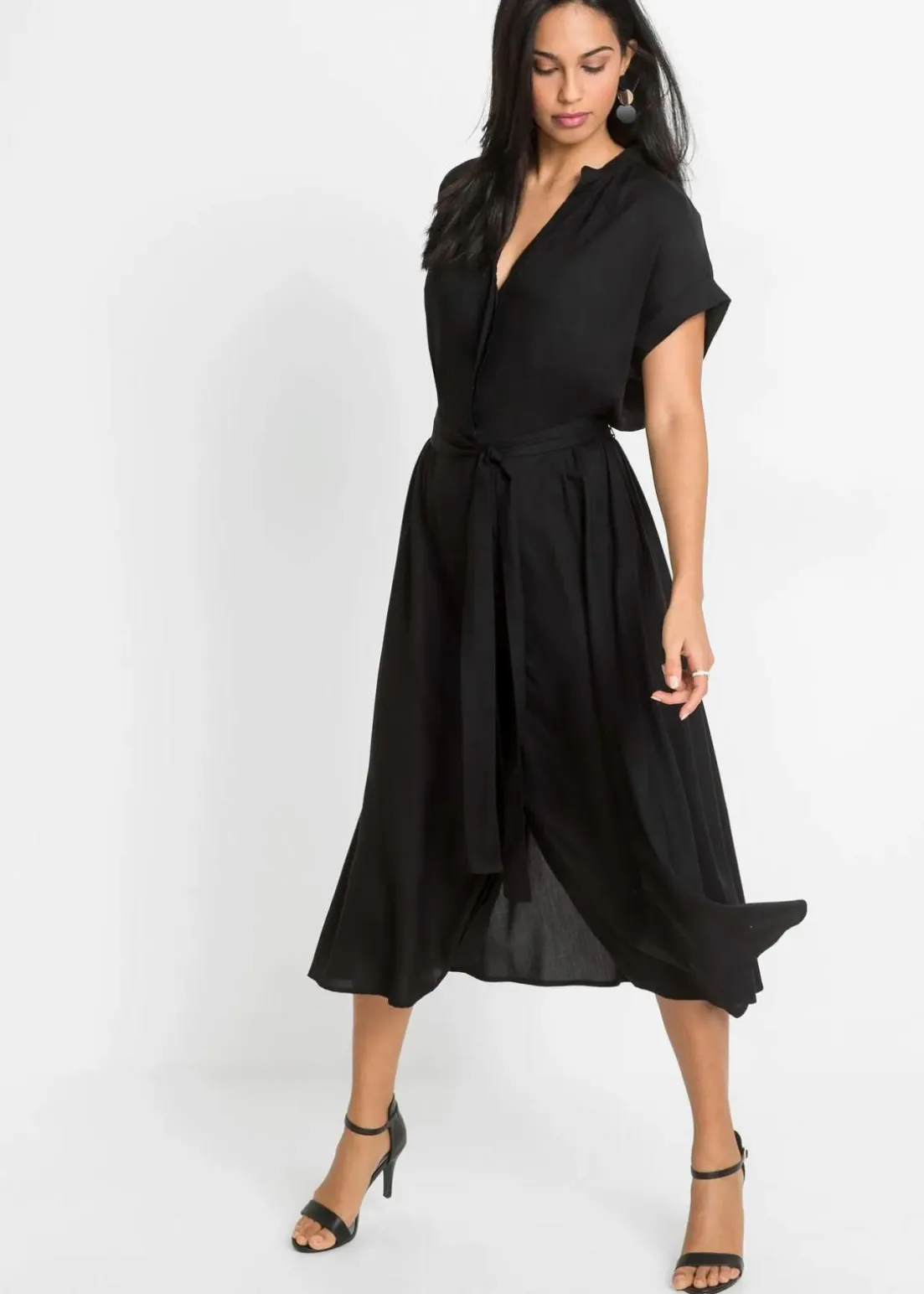 Modisches Hemdblusenkleid mit Bindeband um die Taille.
