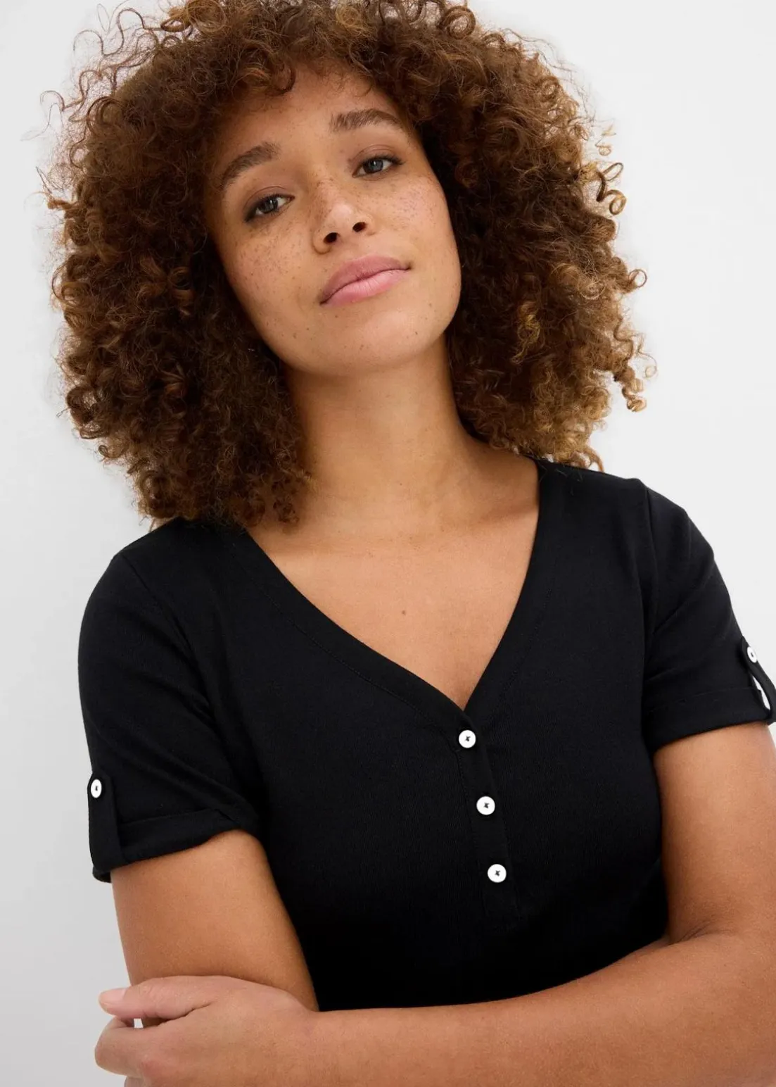 Bequemes Henleyshirt mit einer Knopfleiste am V-Ausschnitt aus Bio-Baumwolle. Länge in Gr. 40/42 ca. 66cm, maschinenwaschbar.