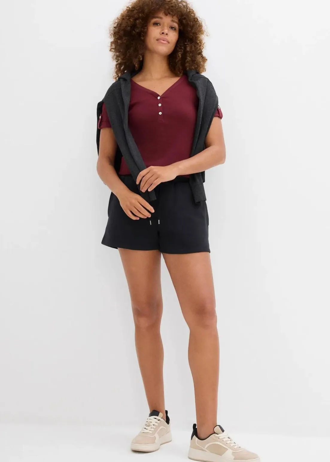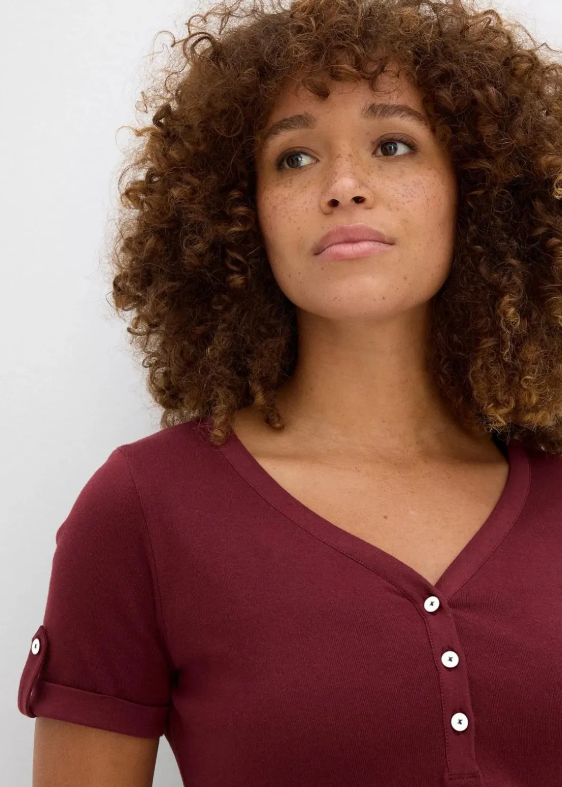 Bequemes Henleyshirt mit einer Knopfleiste am V-Ausschnitt aus Bio-Baumwolle. Länge in Gr. 40/42 ca. 66cm, maschinenwaschbar.
