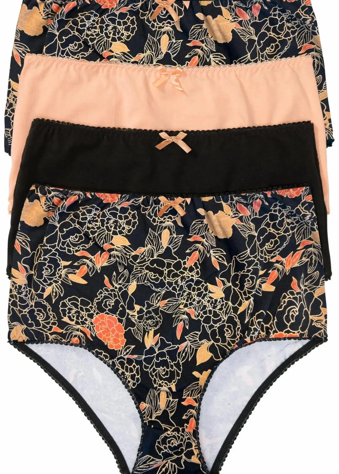 Komfortabler Highwaist Slip im 4er Pack mit Blumendekor und passenden Unifarben