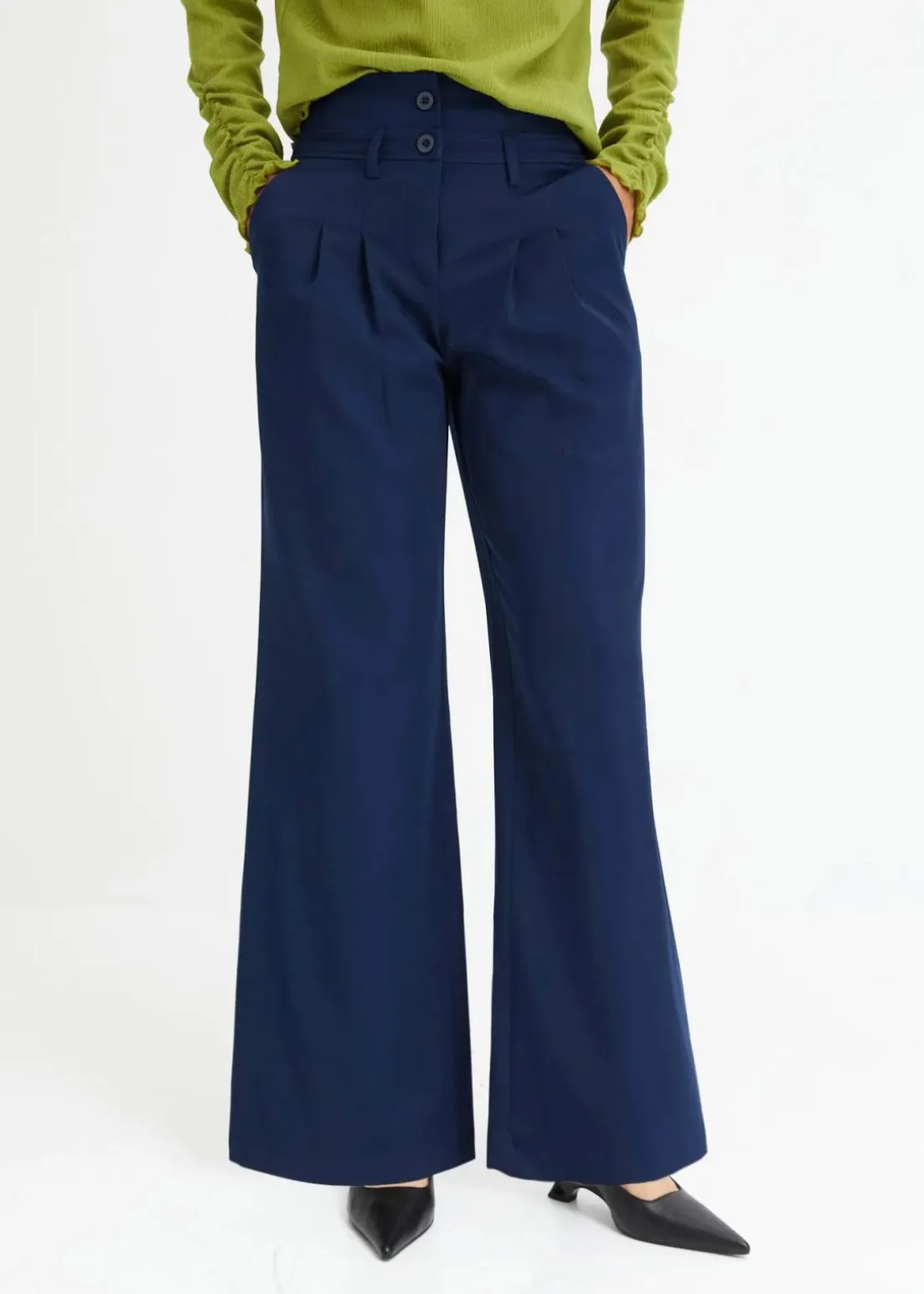 Moderne Twillhose mit hohem Bund und ausgestelltem Bein