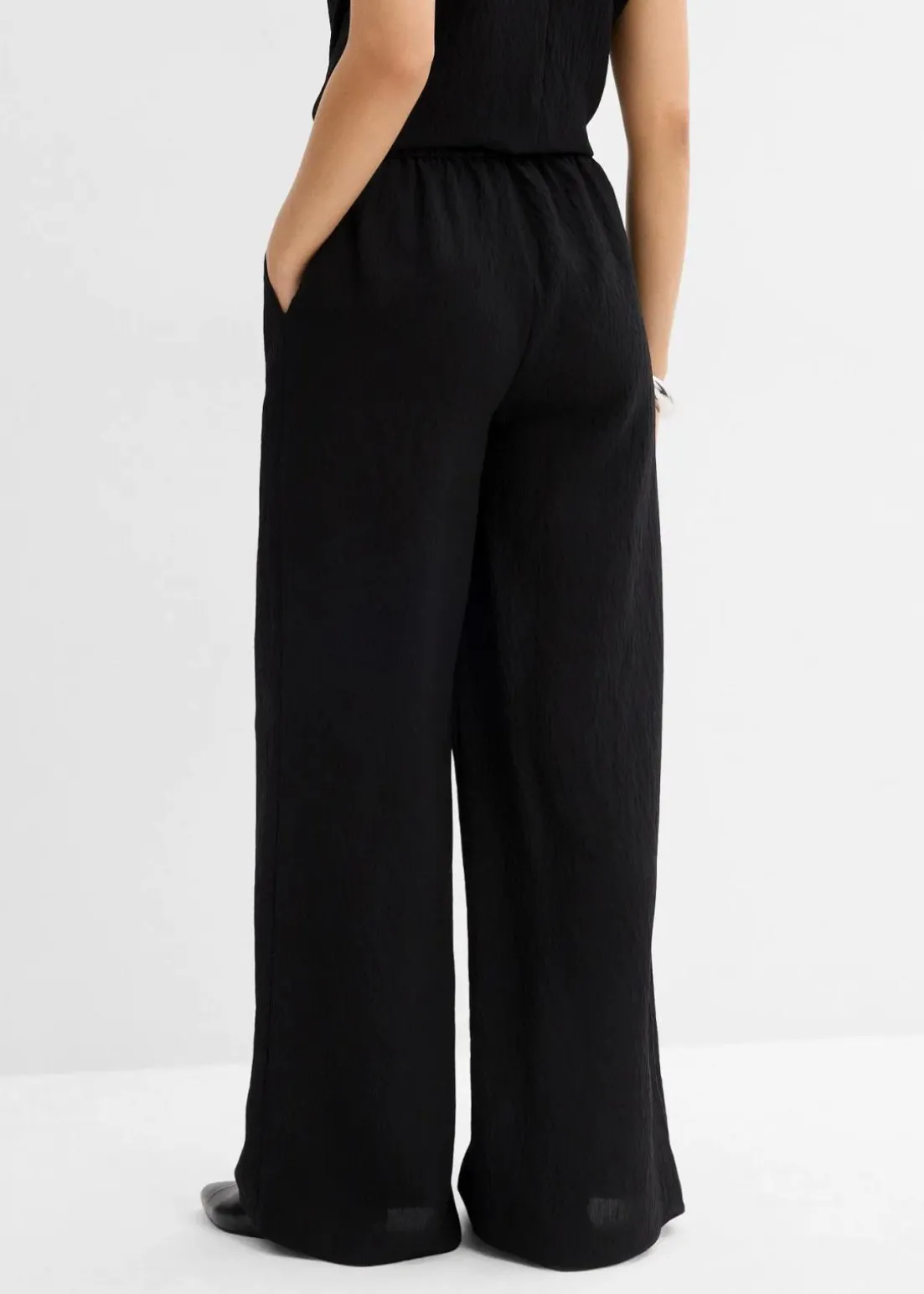 High-waist Hose mit elastischem Bund, seitlichen Taschen und weitem Bein aus strukturiertem Crinkle
