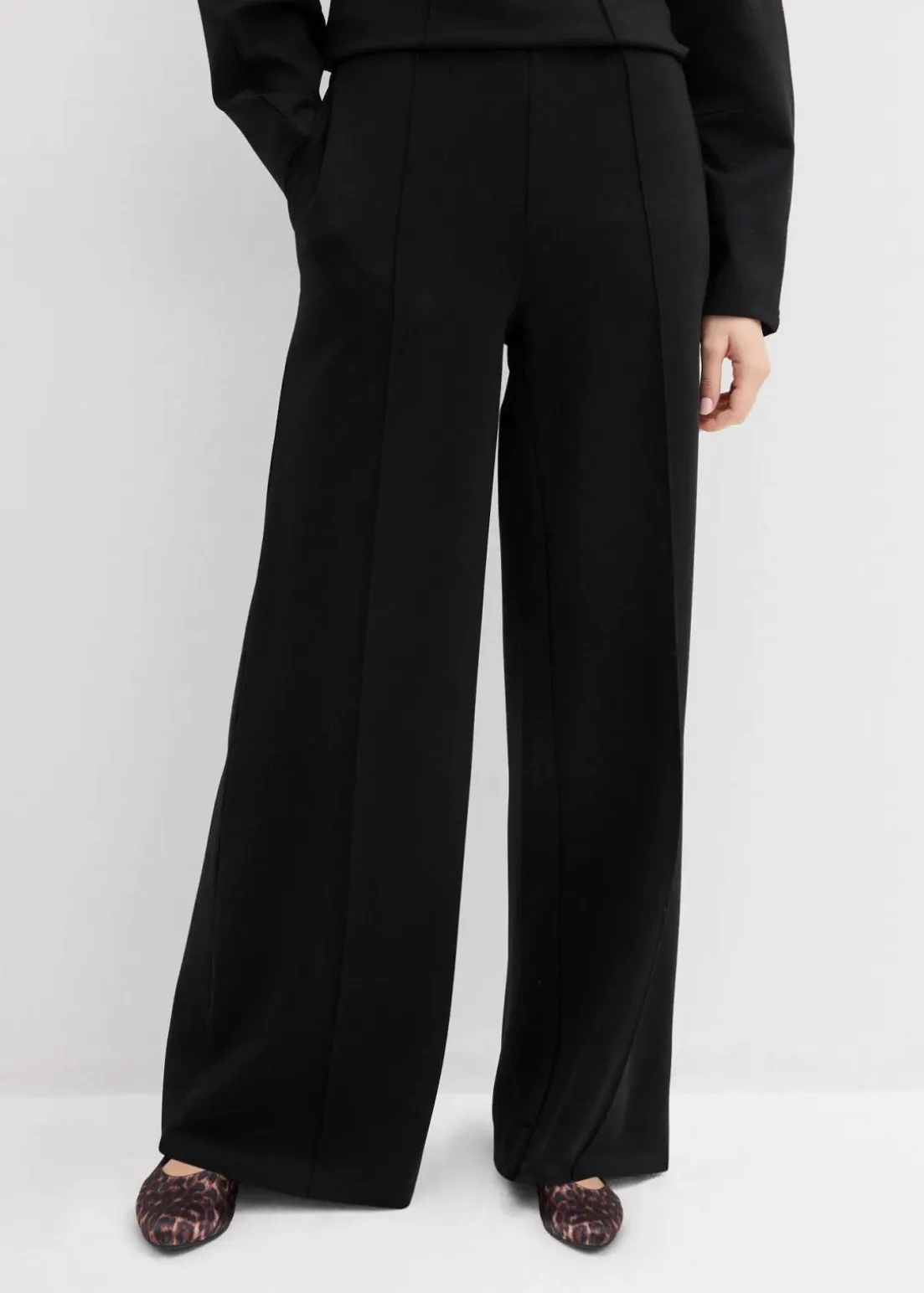 Hose mit weitem Bein aus Punto die Roma mit Bequembund und Biese vorne