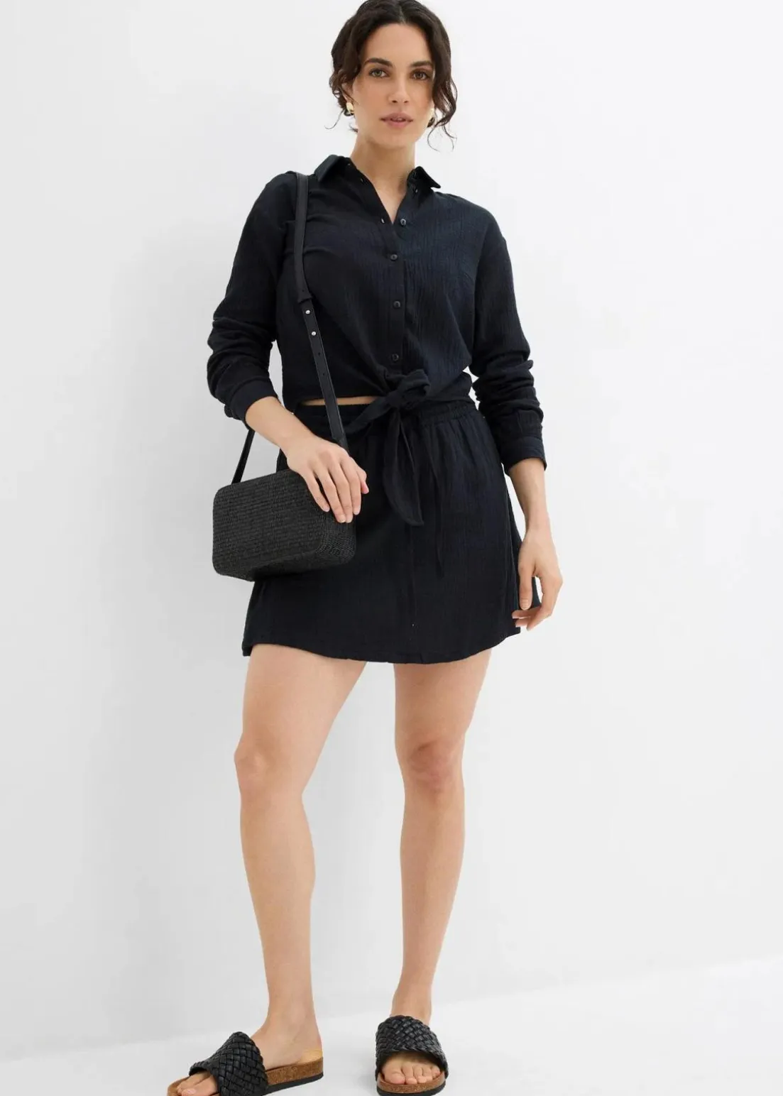 Hosenrock aus reiner Baumwolle. Mit halbhohem Bund und Schnürung.