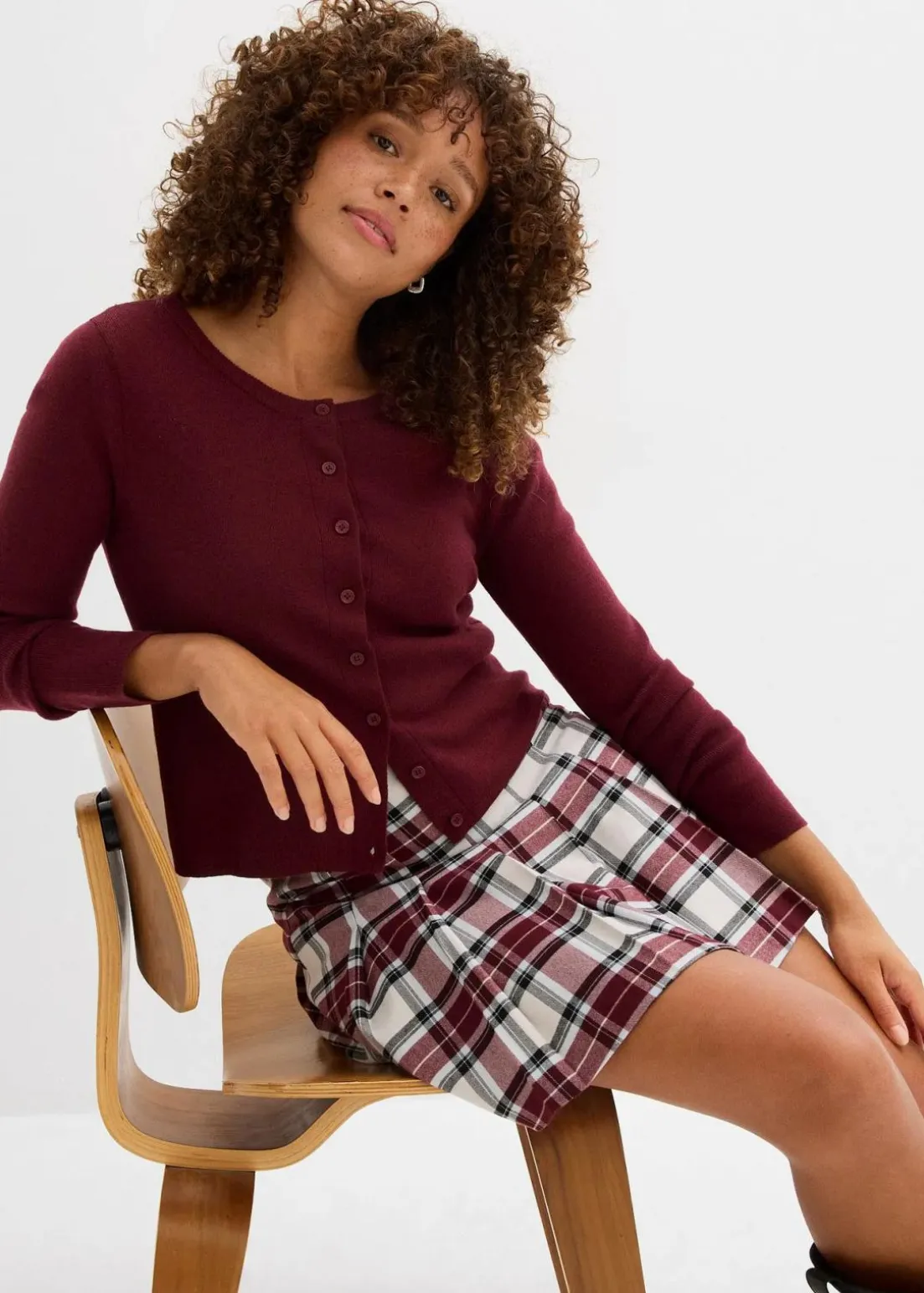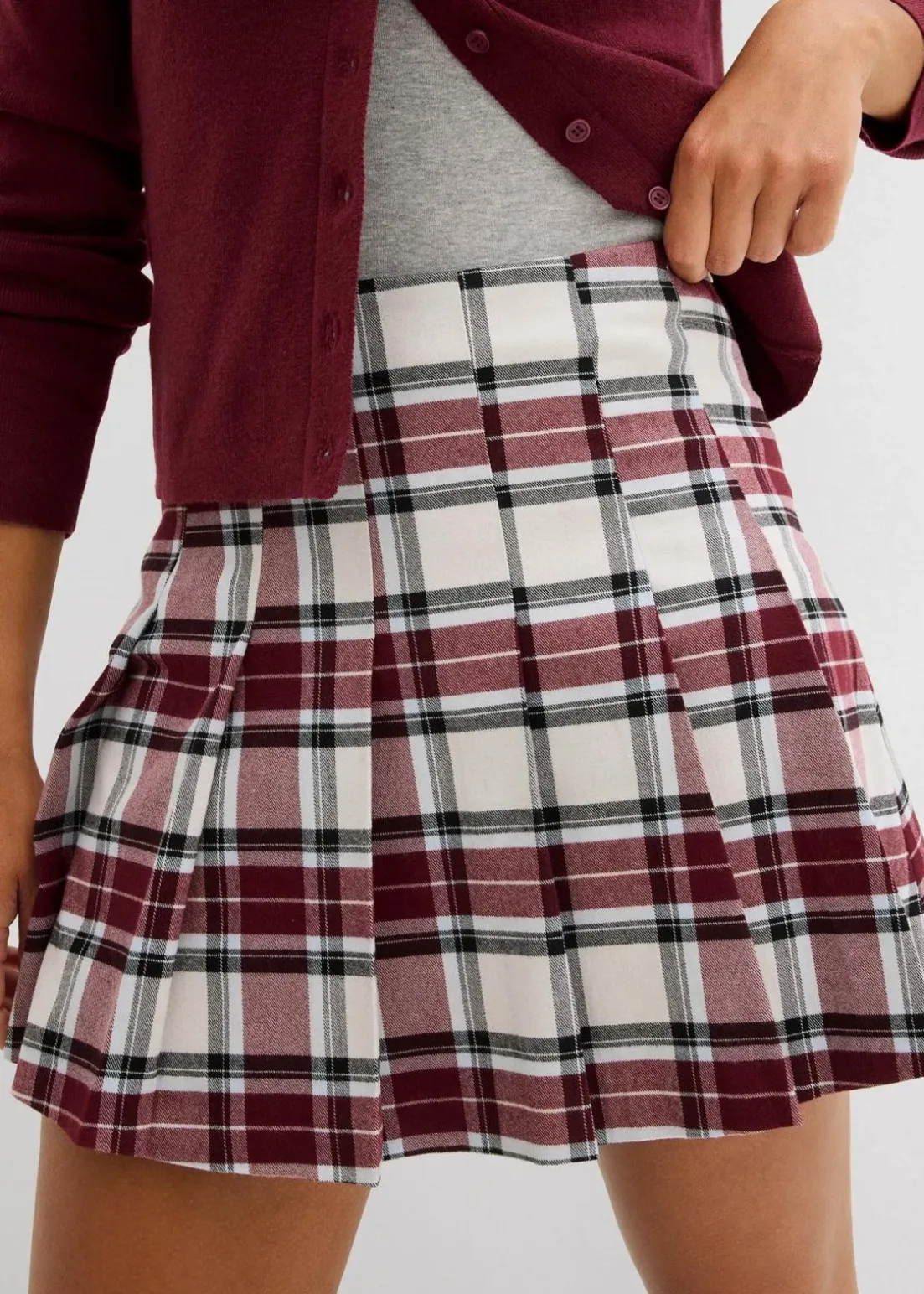 Kurzer Hosenrock mit Karomuster und Kellerfalten