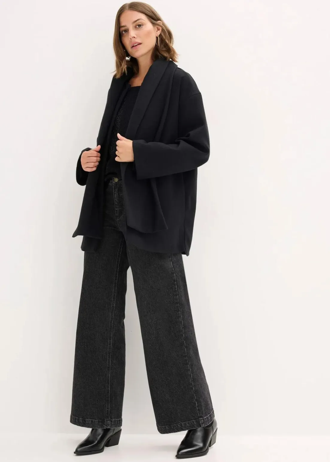 Oversized Jacke mit Taschen in der Seitennaht und abnehmbarer passendem Schal
