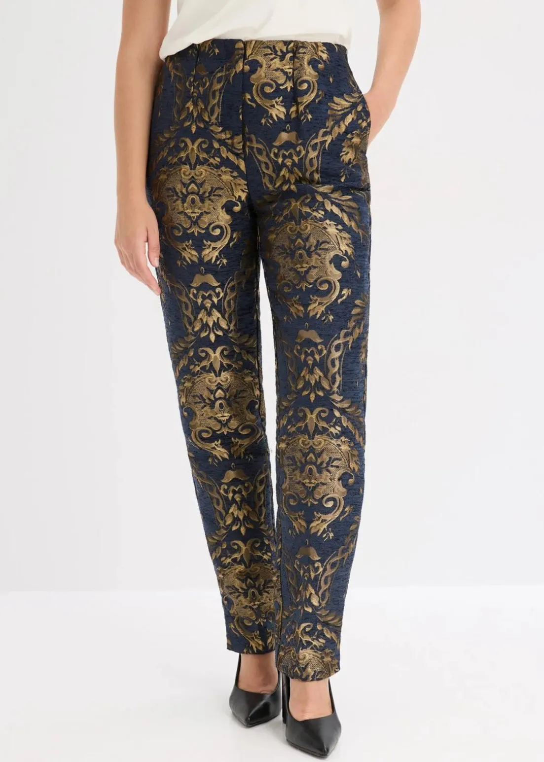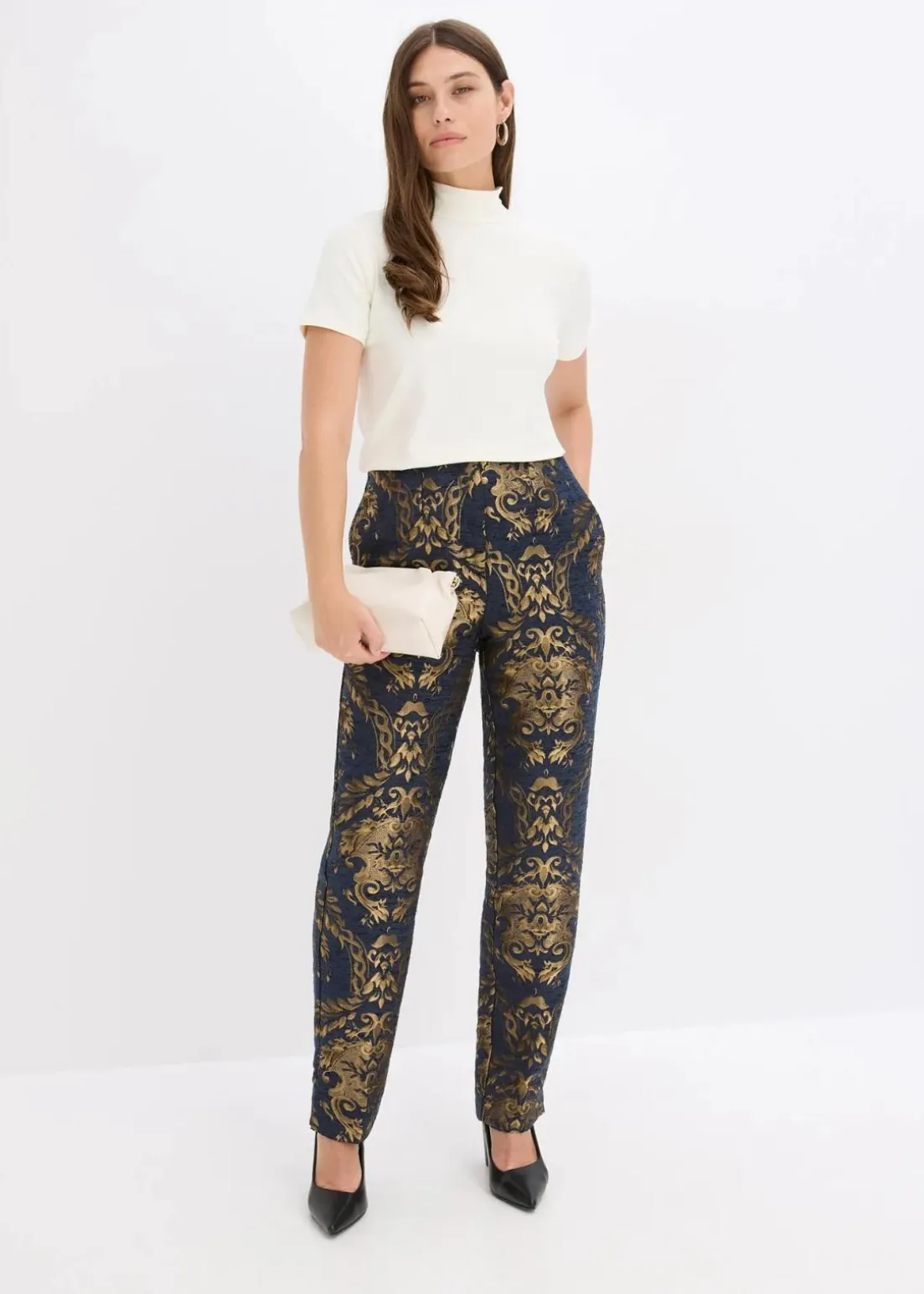 Modern und feminin: Lange Jacquard-Hose aus glänzendem Material