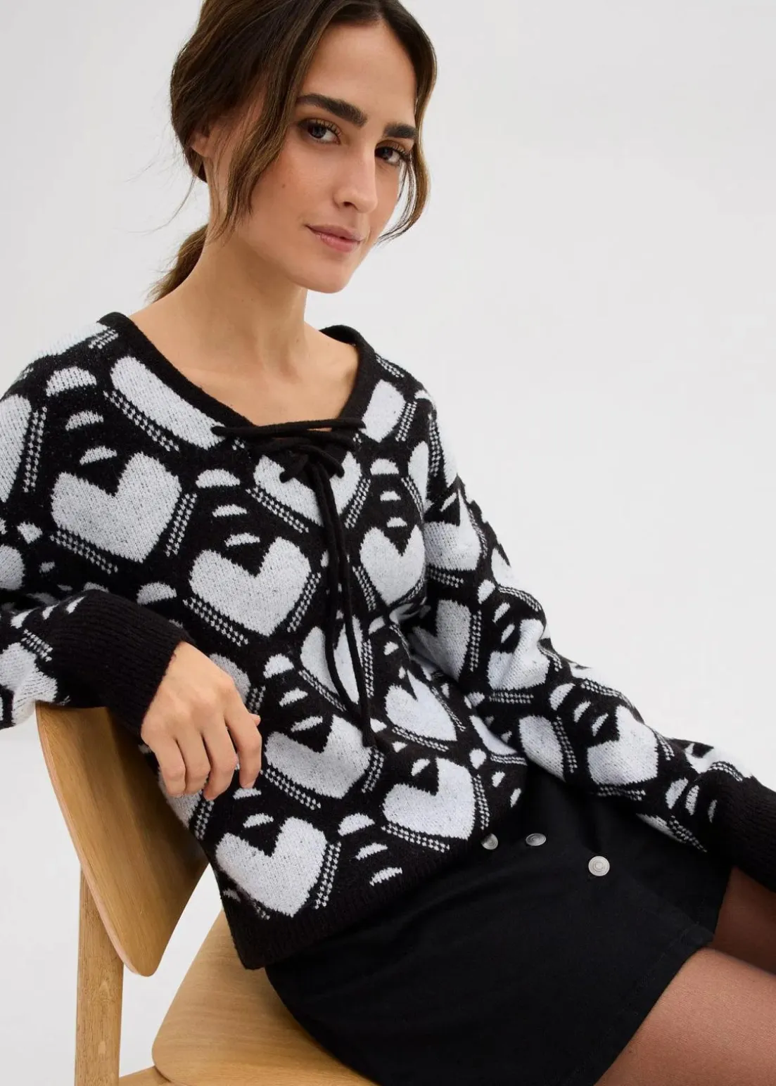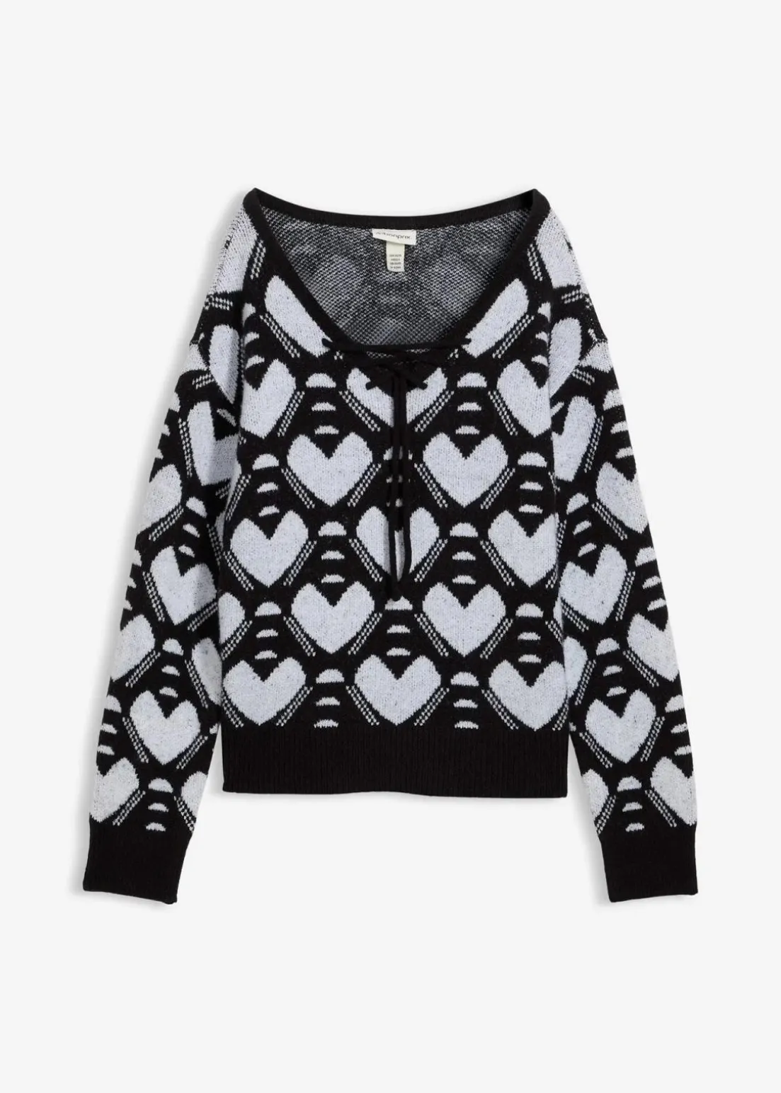 Modischer Jaquard Feinstrickpullover mit Herzmotiv