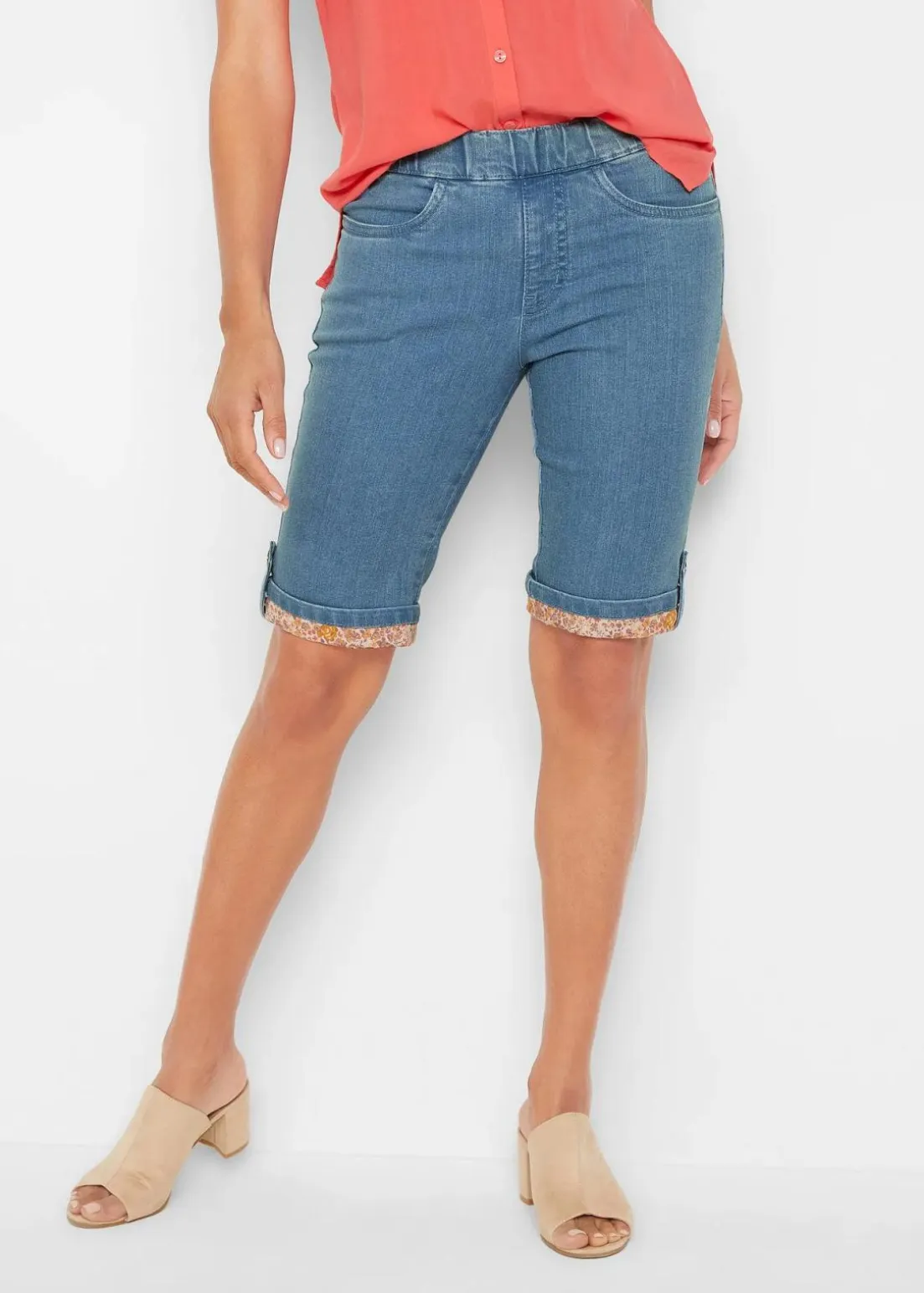 Sommerliche Hose mit gemustertem Saumen-Aufschlag