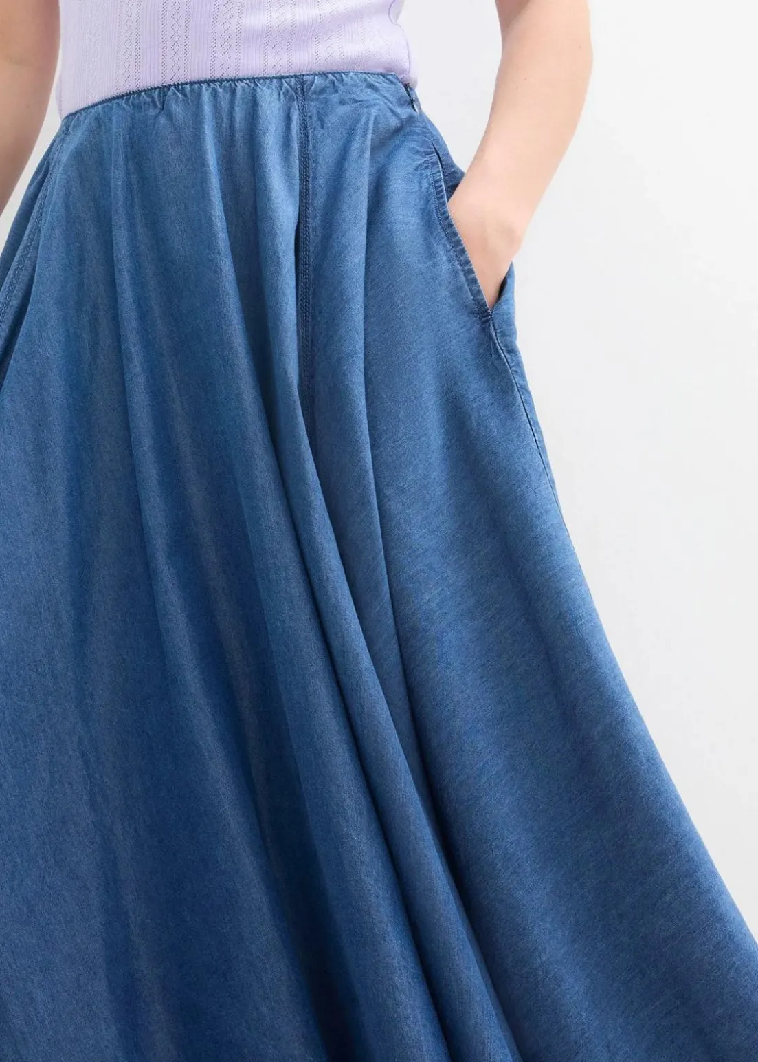 Lyocell-Rock mit Bequembund und Taschen in Midilänge
