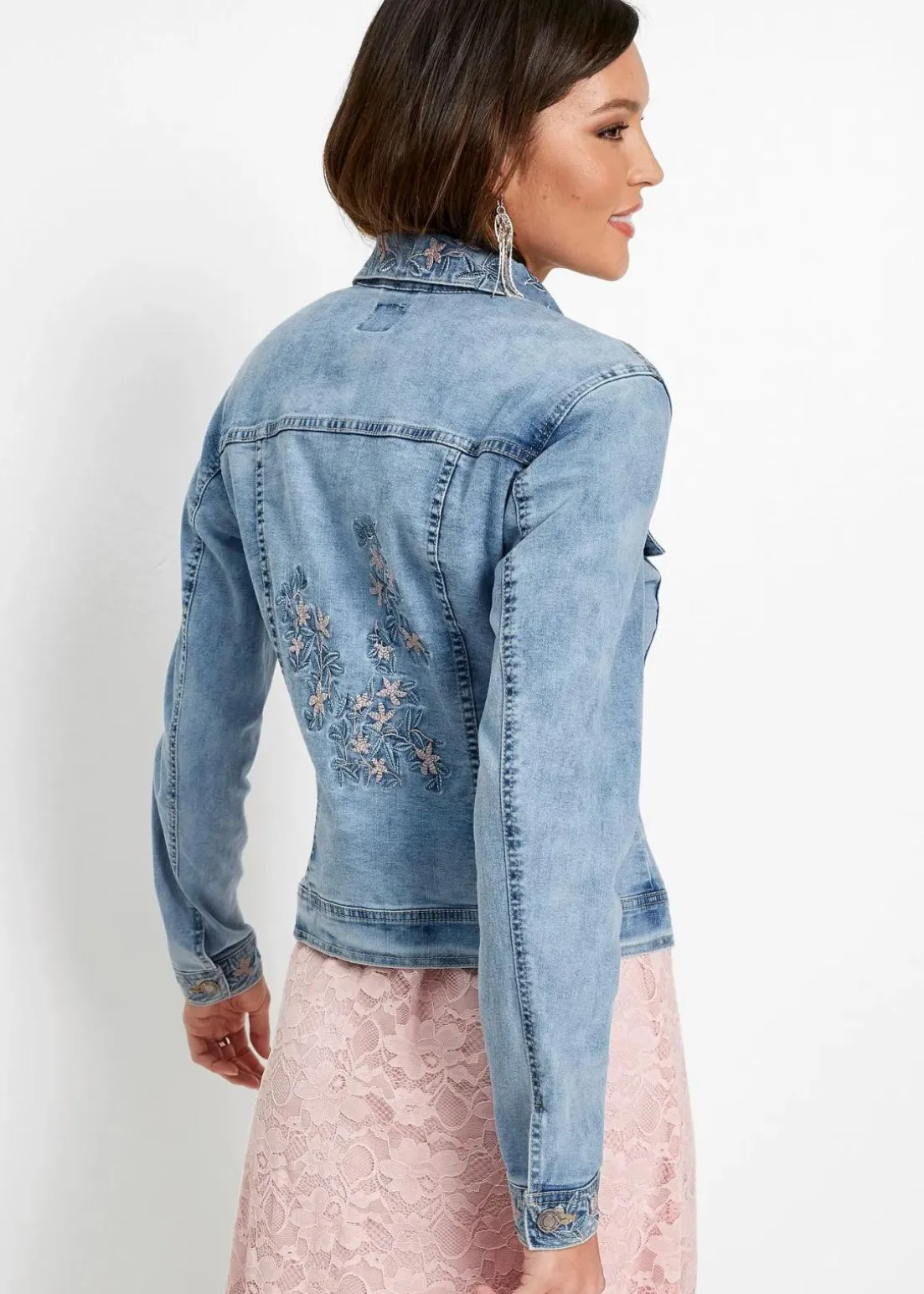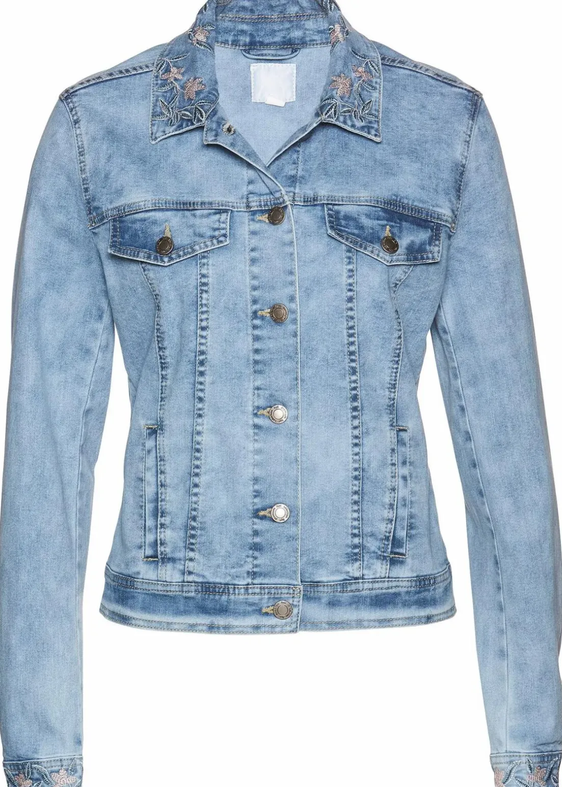 moderne verspielte Jeansjacke mit Blumenstickerei von Premium