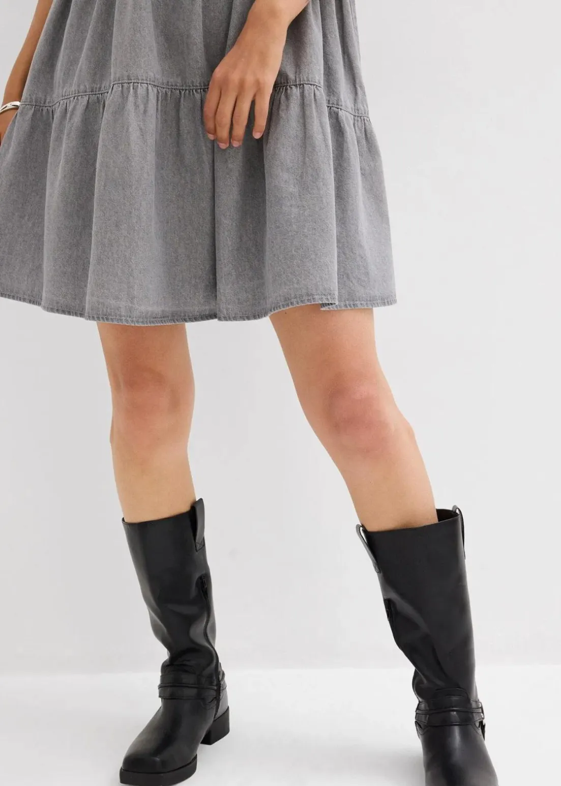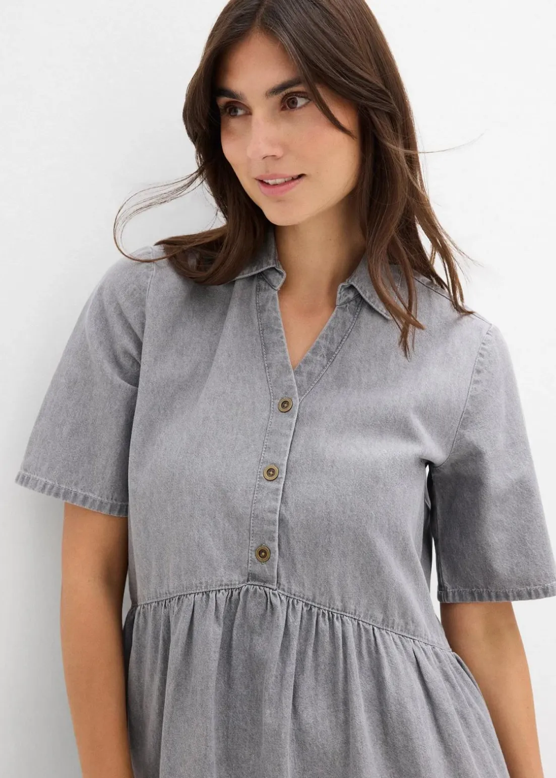 A-förmiges Jeanskleid mit V-Ausschnitt