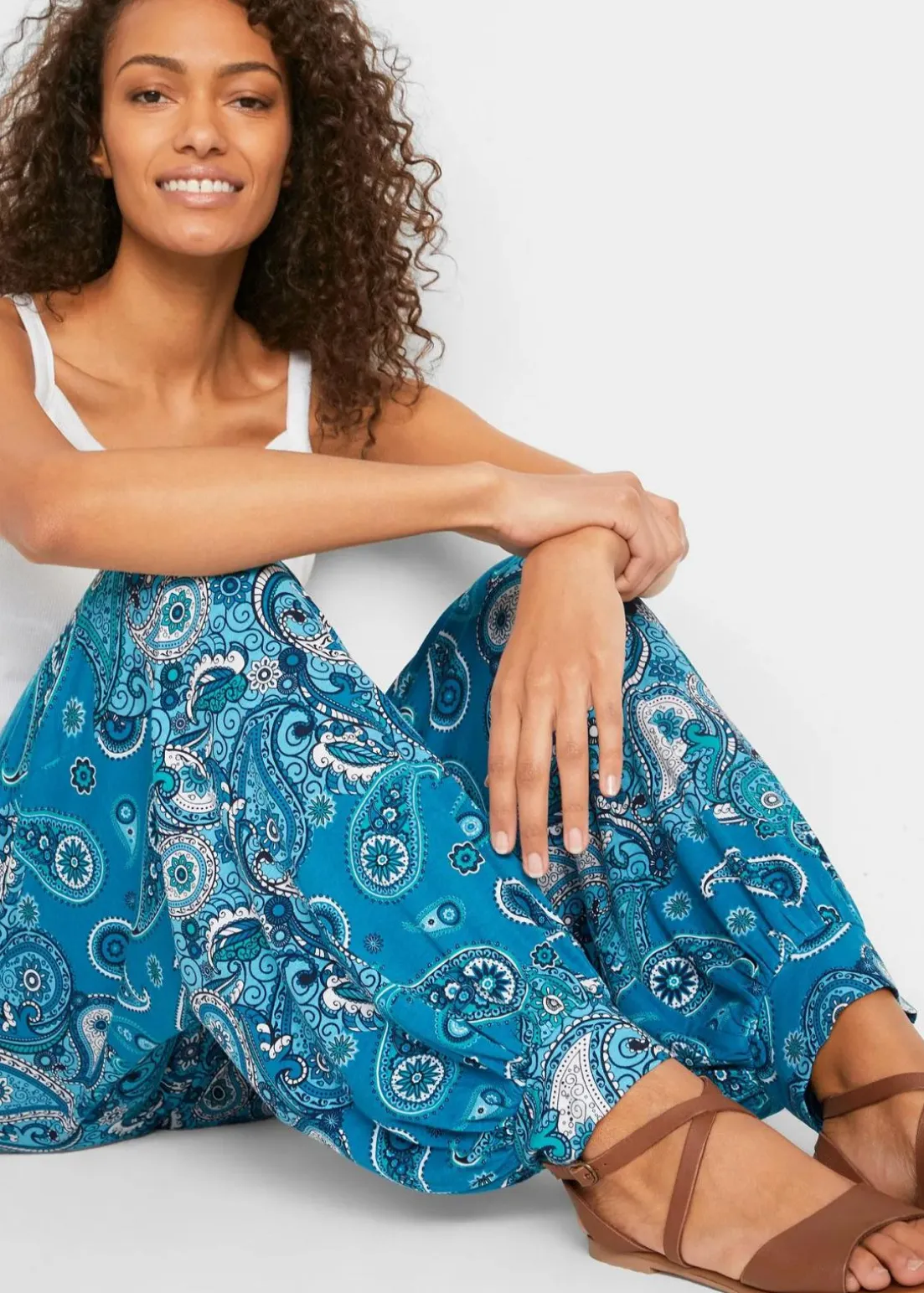 Bequeme Jersey-Haremshose mit Paisley-Print und gesmoktem, elastischem Bund