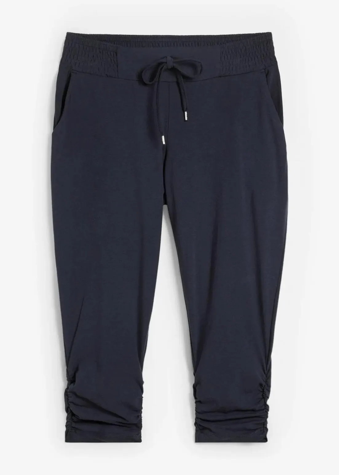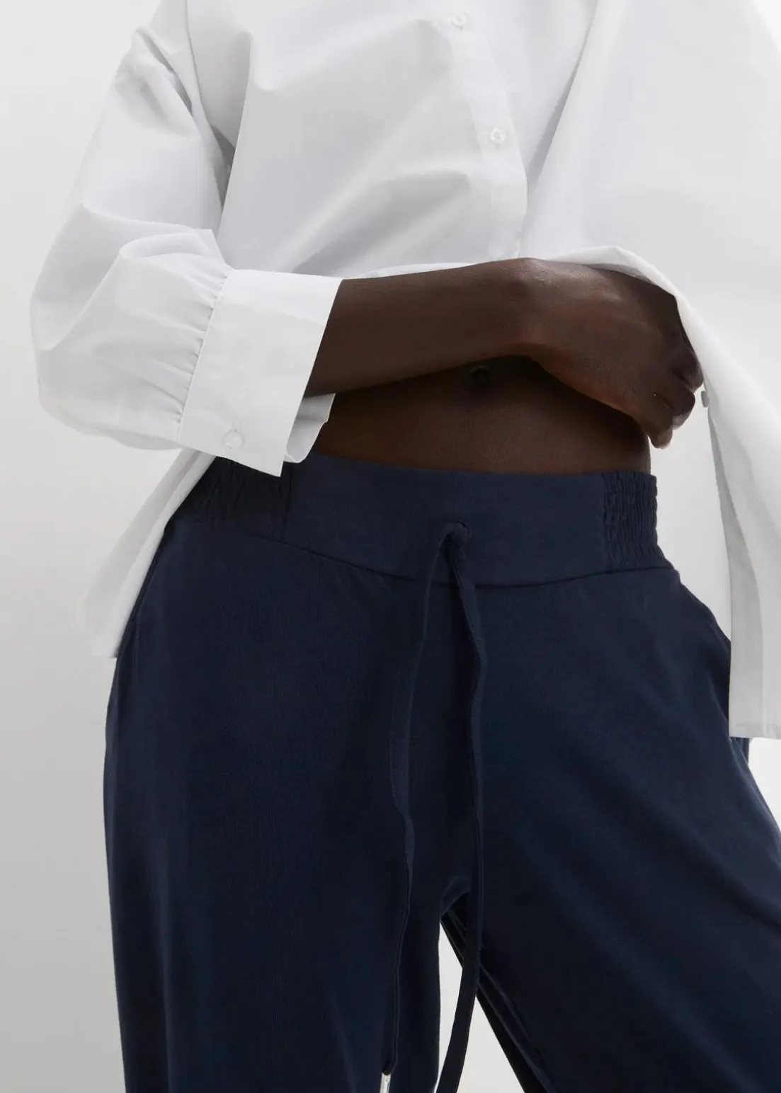 Jersey-Hose mit elastischem Bund und seitlichen Raffungen am Saum.