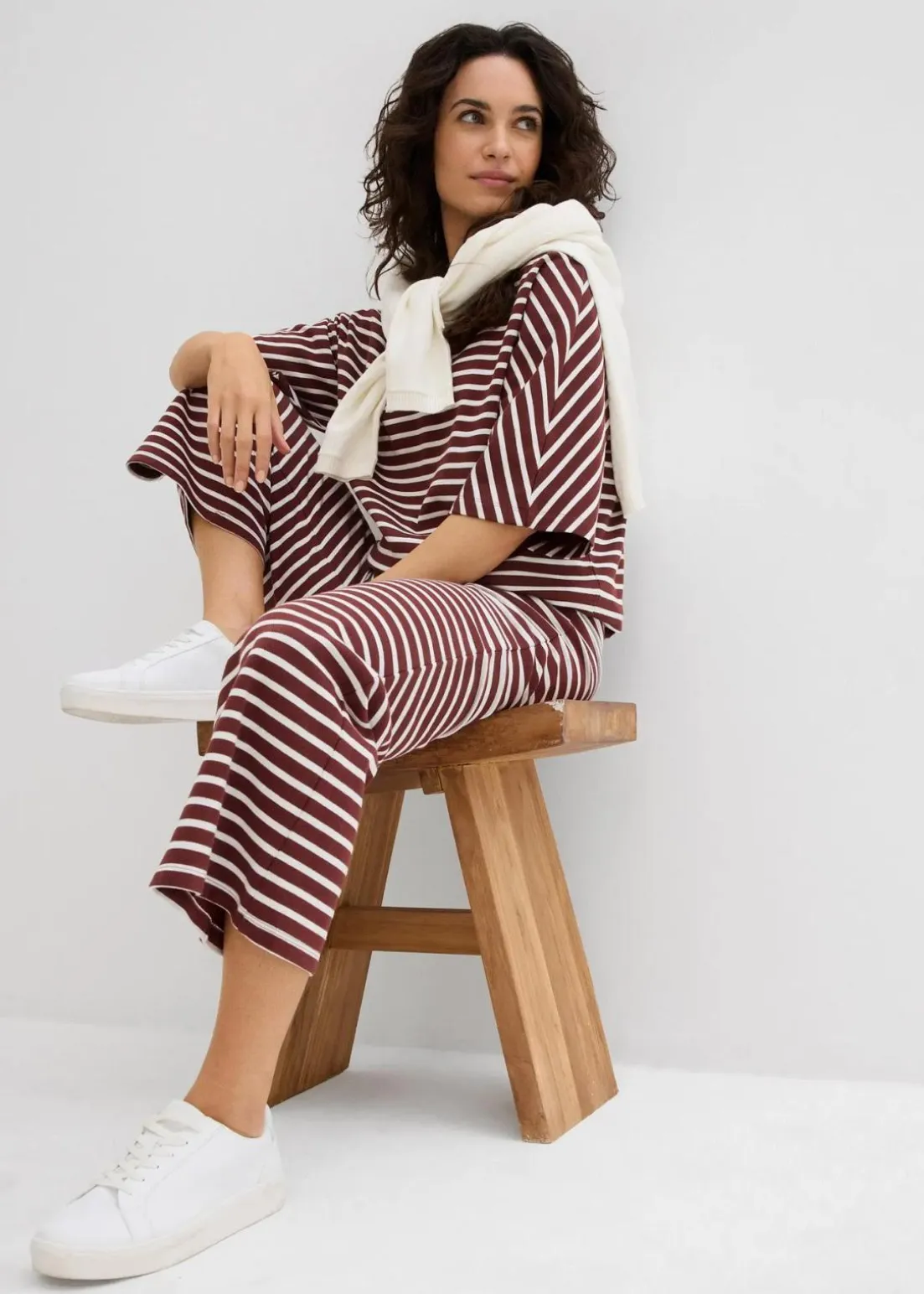 Baumwollhose mit hohem Bund. Ein locker sitzendes Modell mit elastischem Bund in 7/8-Länge.
