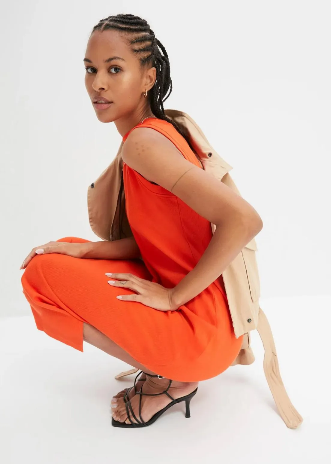 Kleid aus Rippjersey mit rundem geripptem Halsausschnitt und Schlitz
