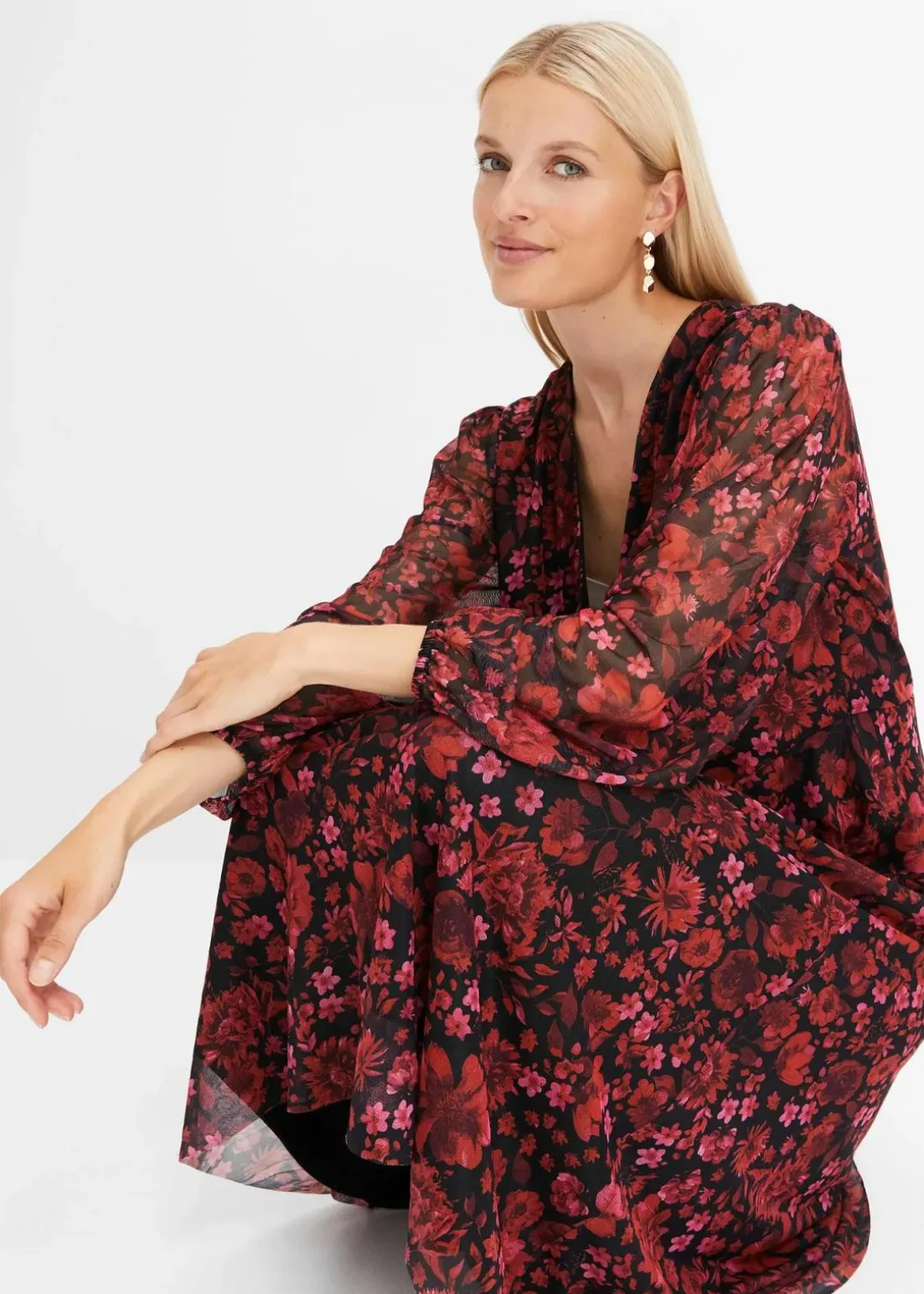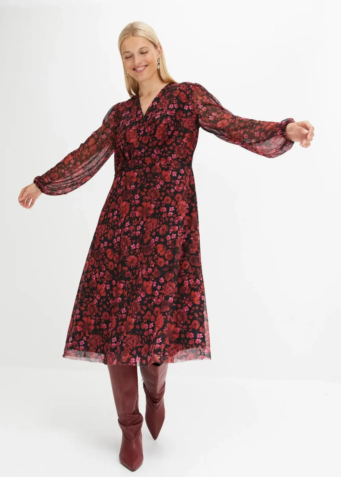 feminines Mesh-Midikleid mit floralem Print
