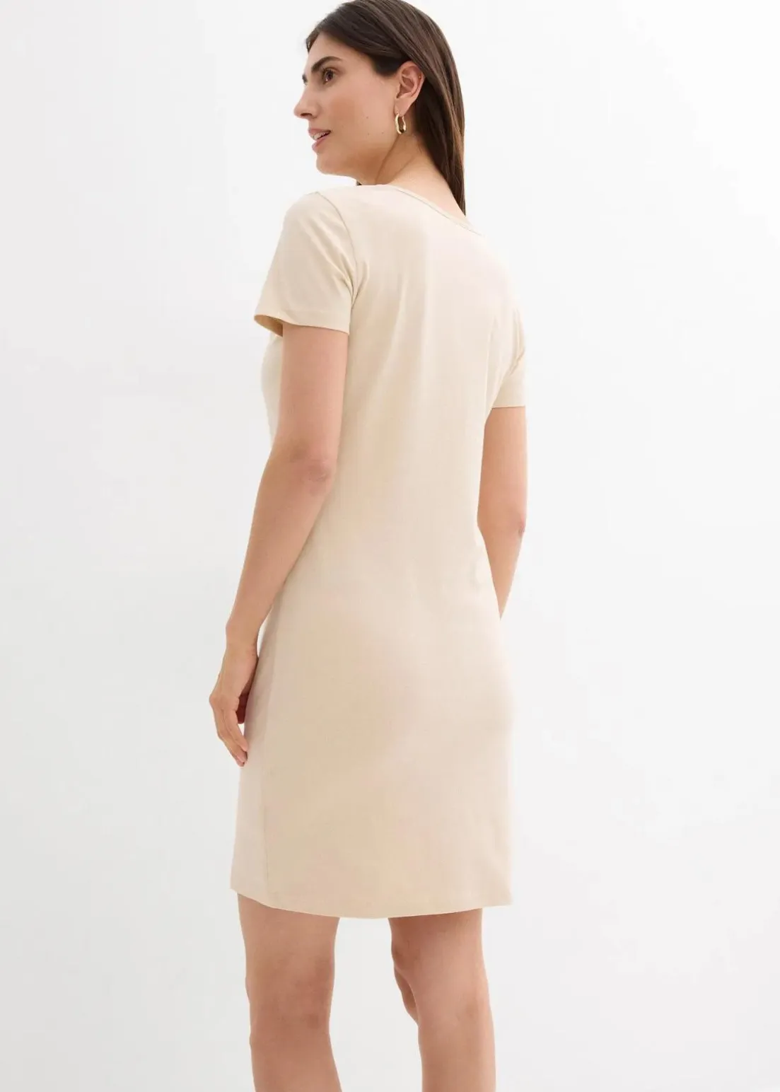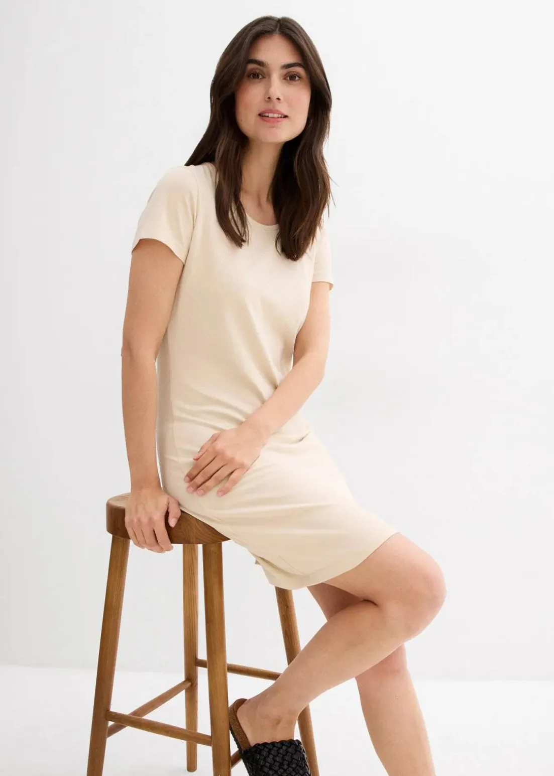Zurückhaltend geschnitten sitzt das modische Shirtkleid mit Rundhalsausschnitt sehr natürlich. Es ist eine vielseitig tragbare Basis der leichten Sommergarderobe und passt gut zu einer Leggings.Das kurze Kleid aus der Kollektion bpc ist in einer angenehmen Stretchqualität gefertigt. Der Stoff aus Baumwolle mit einem geringen Anteil Elasthan begeistert mit tollem Tragegefühl.
