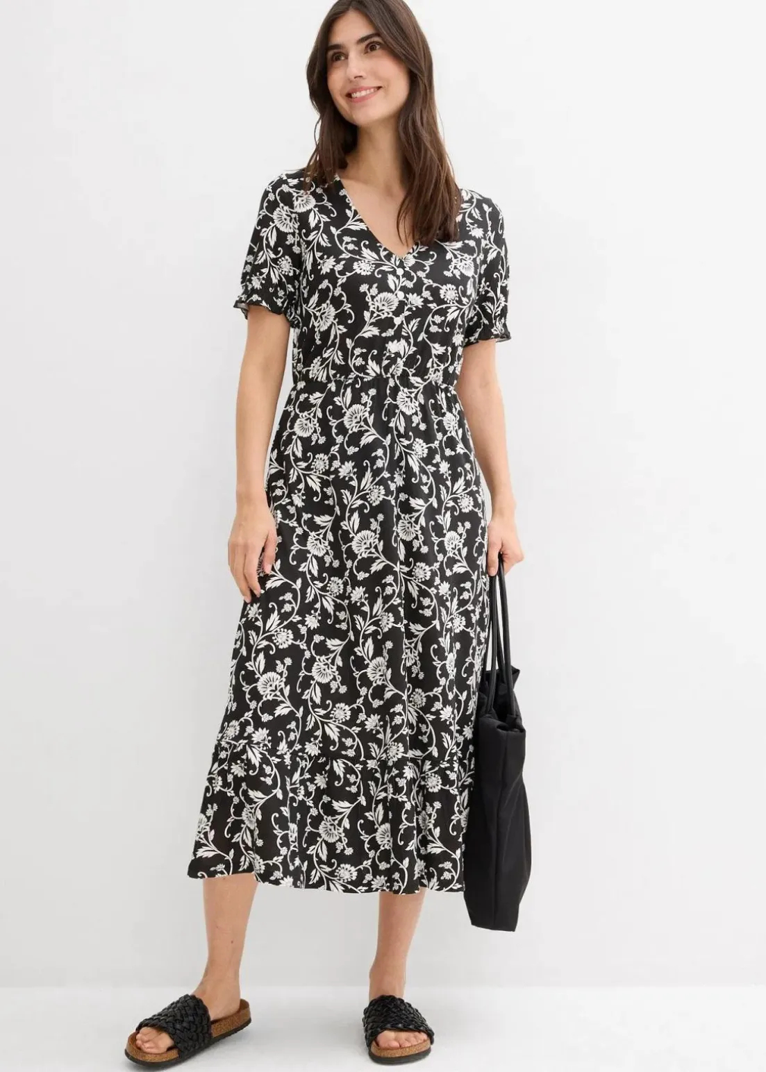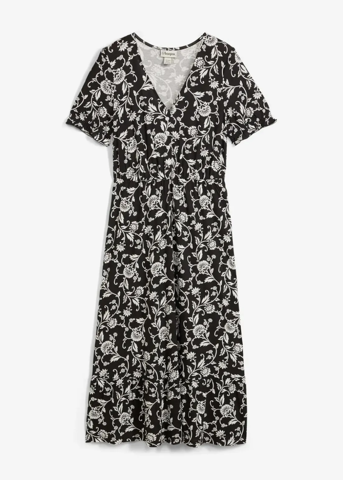 Geblümtes Kleid aus Jersey mit Puffärmeln und Volant