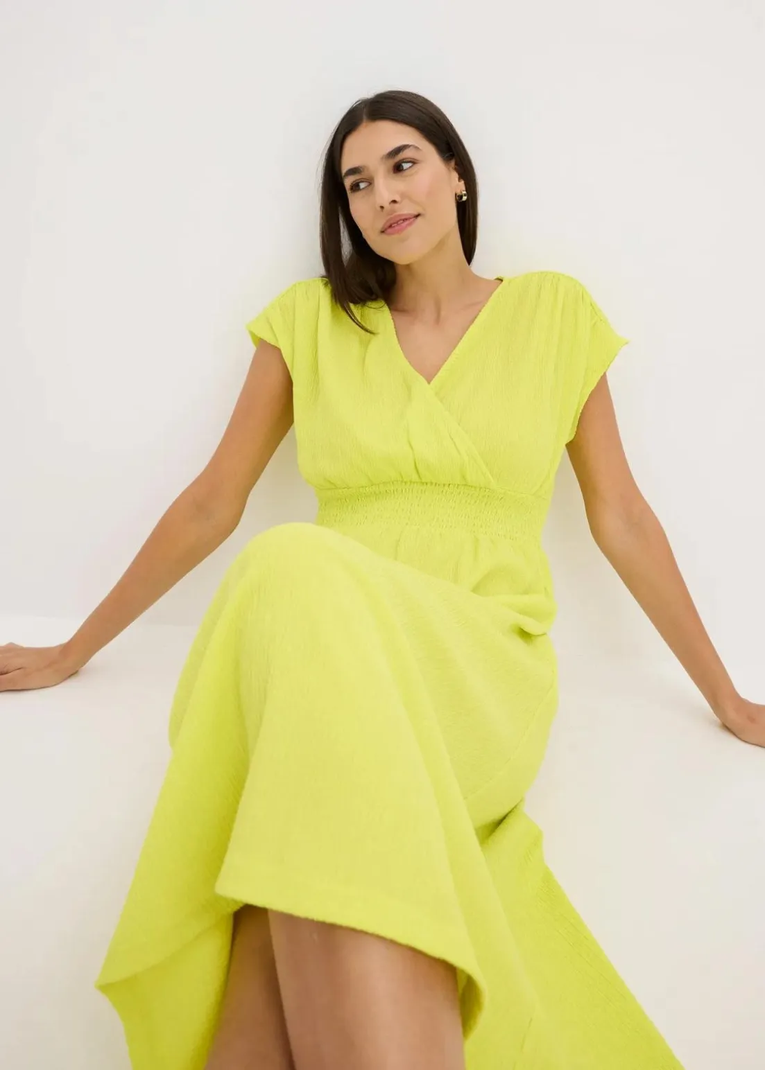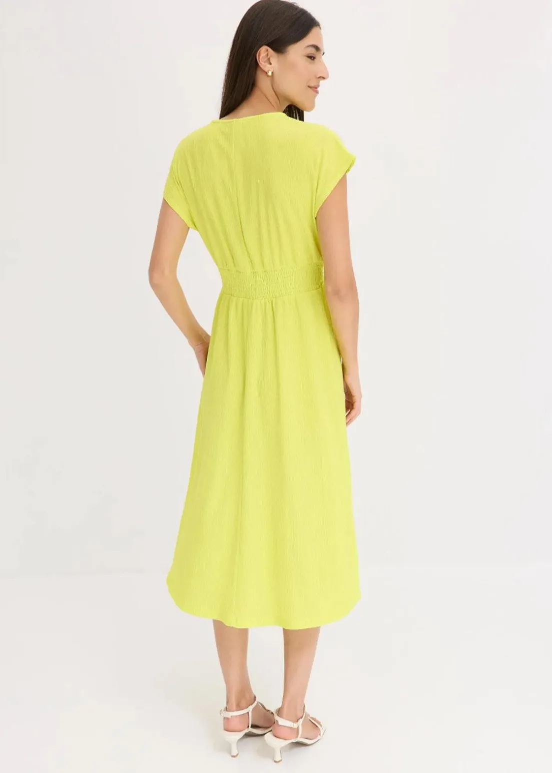 Gesmocktes Jerseykleid mit überschnittener Schulter