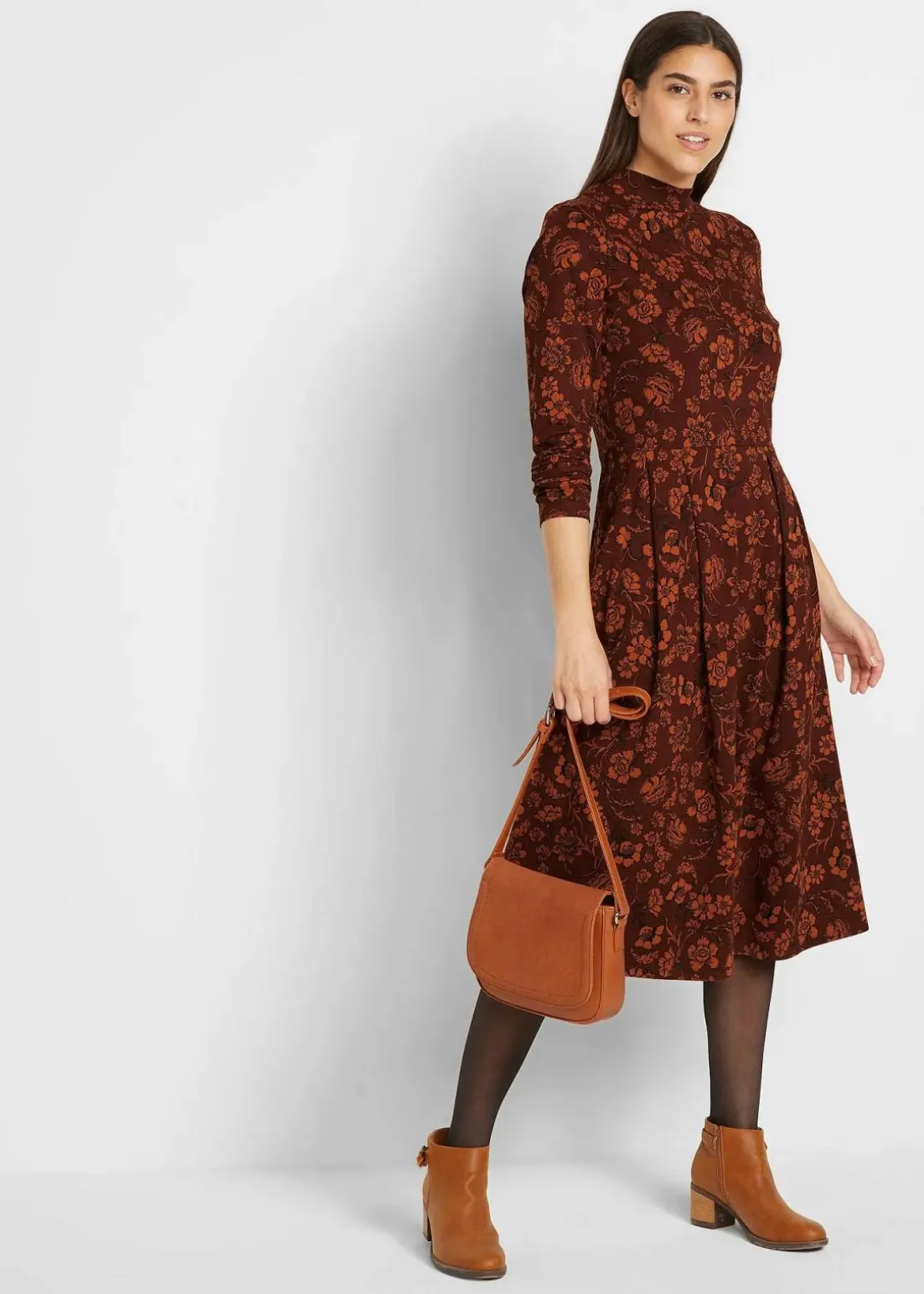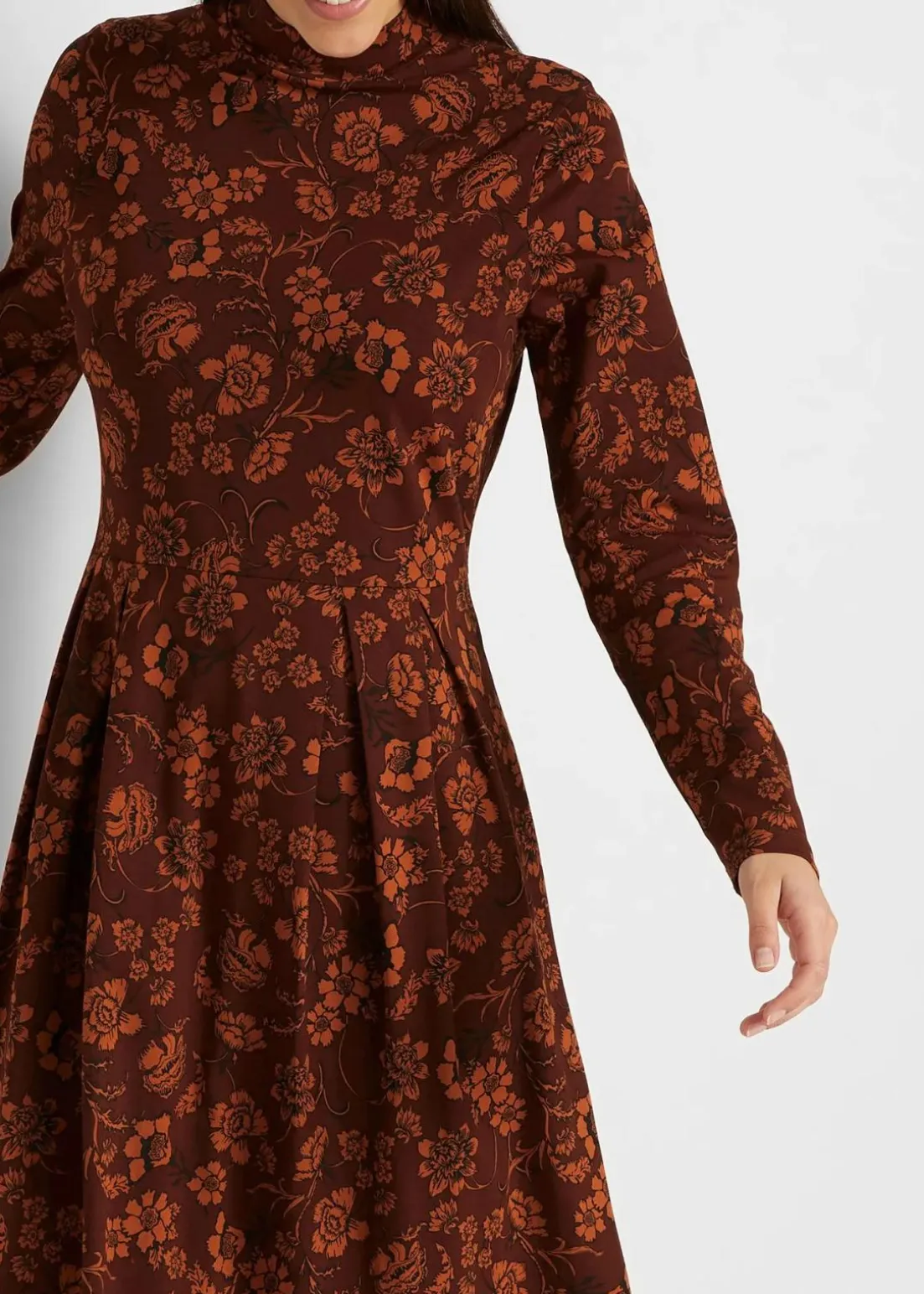 Geblümtes Jerseykleid mit hohem Kragen